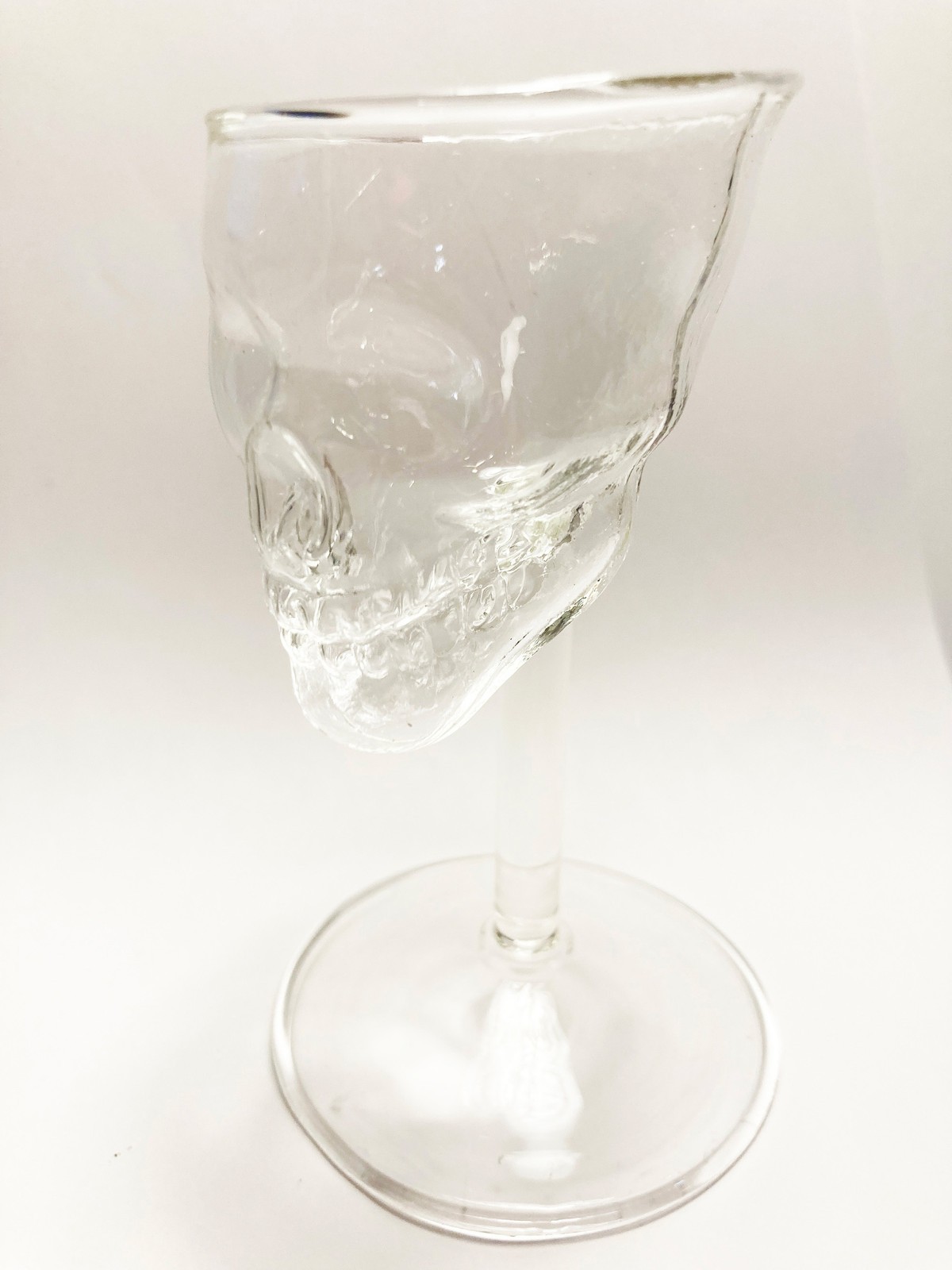 Yo-Ho-Ho and a Bottle of Wine or Rumis all you will need to show off your dramatic new Handmade,Mouth-blown, Crystal Clear Lead-Free Borosilicate Glass, Sculpted 2 ounce (75 ML) SET OF TWO SKULL shapedstemmed Wine or Cocktail Glasses! Enjoy your favorite spirits in style whenusing Mazeology’s Unique three dimensional Sculpted SKULL Shaped CrystalClear stemmed Wine Glasses . Mazeology’s Skull WineGlasses are the Beautiful result created by the Handmade, Mouth-blown glassproduction technique using high strength Borosilicate glass. The weighted,crystal clear, lead-free glass realistically sculpted, three dimensional skulldesign will not tip over, and these stemmed wine glasses add panache to anysetting. The glasses are 4.5" high, the top opening is 2.75" at thewidest point, and the glass base is 2.75" in diameter.