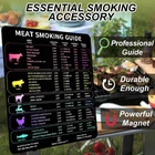 Must Have Smoking Info - The chart includes smoking temperature, goal internal temperature, cooking time, wood types. Useful addition to your pellet grill accessories and BBQ tools. Premium Design & Materials - The meat temperature magnet is waterproof, magnetic. The colors are bright and the words are big. Easy to understand. Goes great as a gift for bbq master Tested for Accuracy – Smoking is all about precision. That's why these magnets for smoking include researched and verified times and temps. Leave nothing up to chance, and get detailed information on 24 cuts of red meat, game, poultry, and seafood Widely Used- Perfected used on Traeger, Pitboss,z grills,Masterbuilt recteq pellet smoker. grilling gifts for men