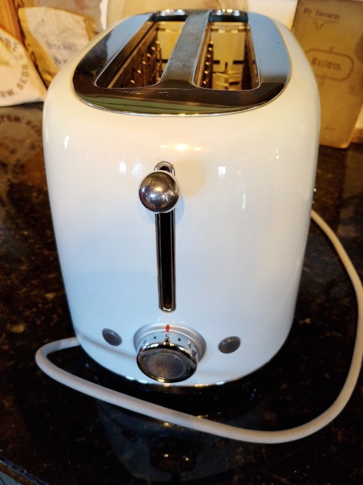 SMEG 4 slice toaster in pastel blue. In nice clean condition. Only toasts one side of bread, outer elements work but inner ones don't. For spares or repair.