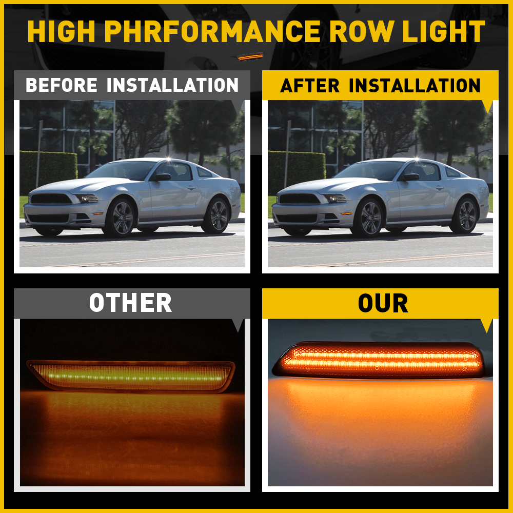 These smoked LED marker lights look amazing on my Mustang! The amber glow is bright and eye-catching, perfectly matching the car's aggressive style. Installation was simple, and the smoked housing gives it a sleek, custom look. Super durable and waterproof—definitely worth the upgrade!