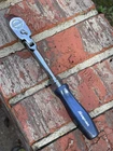 This auction is for 1 of the 7 ratchets that I have. I would say it is a cross in colors. Titanium could be what it is called but, I had someone message me saying they think it is actually “Power Blue”. It is a dark gray with a slight amount of blue in the handle. Please look at the pictures closely and make your own judgement call before making a purchase. I have some other items for sale that might interest you in other auctions. The shipping will likely be USPS but can also be FedEx or UPS depending on which is most cost effective. Please ask any questions before making a purchase. This Snap-on DK Titanium 1/4 Drive Hard Grip Long Flex Head Ratchet is a top-quality tool for any mechanic or DIY enthusiast. Made in the United States, it features a durable and reliable design with a hard grip for easy handling and a long flex head for maximum torque. The ratchet is perfect for a single item and comes with a manufacturer part number of THLFD72. It does not have a quick release and is sold as a single item. The brand is well-known for its high-quality tools, and this one is no exception. Whether you're working on your car or truck, this ratchet will help you get the job done right.