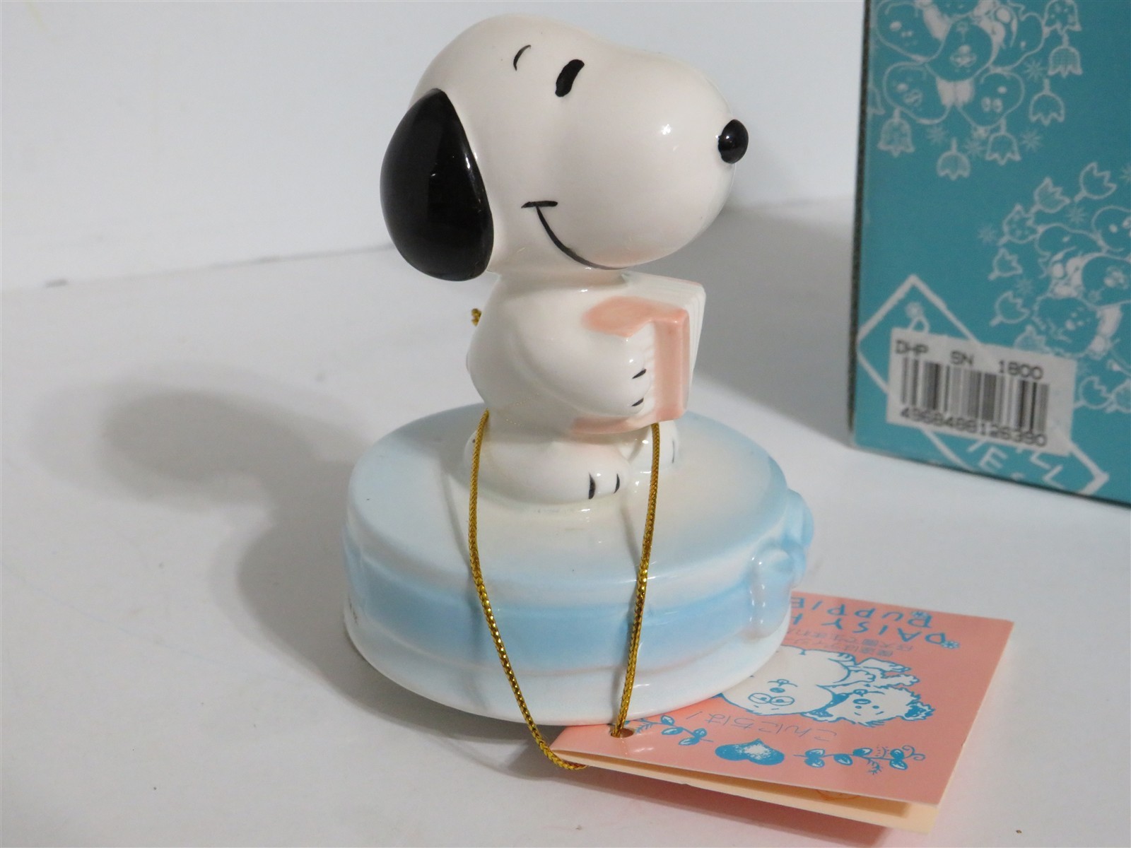 YOU ARE BIDDING ON A RARE, THE GLORY COMPANY LTD, CERAMIC , 3 1/2"H , MUSIC BOX FIGURINE . WIND IT UP AND IT PLAYS MUSIC. THIS ITEM IS IN VERY GOOD CONDITION. I NOTE NO FLAWS OR DAMAGE. (PLEASE CHECK OUT PHOTOS). PRIORITY MAIL SHIPPING CALCULATED BY ZONE. NO HANDLING CHARGES . PLEASE CHECK OUT ALL OUR AUCTIONS FOR MORE GREAT SNOOPY ITEMS!!! COMBINED SHIPPING FOR ALL MULTIPLE ITEM PURCHASES !!! Powered by SixBit's eCommerce Solution