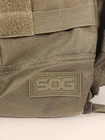 Sport/Activity:HuntingItem Height:19 inchesSeason:SummerFeatures:External Pockets, Padded StrapsColor:GreenNumber of Dividers:5 or moreCare Instructions:Clean with Damp ClothClosure:ZipType:Tactical BackpackMaterial:CanvasCountry/Region of Manufacture:ChinaSize:MediumHandle/Strap Material:NylonItem Width:14 inchesCapacity:25 LNumber of Pockets:More Than 8Vintage:NoTrim Material:NylonBrand:SOG