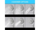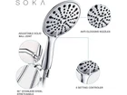 SOKA High Pressure Shower Heads with 6 Spray Setting Massage Spa 6" Showerhead with Handheld Shower Head with Extra Long Hose 59 Inches(5 Feet)And Adjustable Bracket Matte Black Condition: New Color: Matte Black Size: 6 Inch Features hand held shower head MULTIPLE SPRAY 6 SETTINGS: The powerful and multi-functional handheld showerhead has 6 different spray patterns include Expanding Spray, Rain, Massage, Rain+ Expanding Spray, Rain+ Massage spray, Pause (Left), Pause(Right) modes which make pressure boosting effect for ultimate shower experience even at low pressure. LIGHTWEIGHT AND FLEXIBLE: The shower hose measures 6 feet which delivers real flexibility and convenient washing experience, to use in cleaning the tub/shower combination or your pets. ANGLE-ADJUSTABLE OVERHEAD BRACKET: Angle adjustable shower hold with swivel brass ball joint lets you point hand shower where you want it for hands-free operation at desired angle, enable you to relax and enjoy a natural SPA at home. HIGH-QUALITY MATERIALS: The shower head body and bracket mount are made with highest quality chrome plated ABS materials, sturdy and durable, no toxic or lead. The TPR soft silicone nozzle prevents mineral accumulation and is easy to remove with your fingers. Stainless Steel Hose make the high-pressure shower head set light, high strength and no rusting or fading. EASY INSTALLATION: Everything is included for easy installation. No need to call a plumber, installs the handheld adjustable shower heads with hose in minutes with just one hand-tighten connection. Fits any standard shower arm. Specs In the Box: (1) SOKA High Pressure Shower Heads with 6 Spray Setting Massage Spa 6" Showerhead with Handheld Shower Head with Extra Long Hose 59 Inches(5 Feet)And Adjustable Bracket