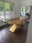 Can be Customize, Please message your desired shape and size . Epoxy Color can also change as per buyer requirement. This is a Epoxy Resin Gaming or Trading Desk made with Walnut which is beautified with colored pigment . The resin river table is brand new and the contemporary design would be a unique addition to your home. With its perfect combination of style and function this piece of furniture is sure to be the star of any room. This modern table will also make for an awesome gift for your friends or relatives. Each one is created with high quality resin and individually handcrafted. Resin is a highly reflective medium which will catch anyone’s eye walking into the room. All tables are finished to the highest standard. The epoxy resin is very strong & durable with specialised UV resistance. The tables are delivered flat packed. Simply bolt the legs. This listing is for a custom Live edge Wooden Table. We have access to thousands of live edge slabs of domestic and exotic species that are imported from around the globe. We use only the highest quality of hardwoods and materials in our work, and believe only in perfection. Kindly Note: As raw wood is used in its natural form and shape to make the table, the table shown in the photos has already been purchased so actual product may vary from the picture shown. Kindly Note: Any accessories/Chairs and legs shown in picture NOT included in given prices. if you want legs then you are to pay spare money. Please contact me if you have any kind of query. Kindly Note: Please contact me if you have any kind of query.Buyers are liable for any customs and import taxes that may apply. I'm not liable for delays due to customs. Buyers are liable for any customs and import taxes that may apply. I'm not liable for delays due to customs.