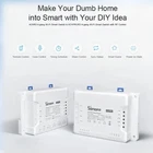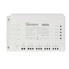 SONOFF 4CH PRO R3/4CH R3 Smart Switch WiFi Wireless Switch Module Voice Control Support Alexa Google EWeLink Smartthings Alice Description: 100% brand new and high quality Sonoff 4CH is an ESP8285 based 4 channel (4-gang) din rail mounting WiFi switch. Sonoff 4CH supports to connect and control 4 home appliances, which can be turned on/off separately by the buttons or iOS and Android APP EweLink. Owning a Sonoff 4CH means you have 4 Sonoff basic WiFi switches integrate together. The enclosure is din rail mount supported! A DIN rail is a metal rail of a standard type widely used for mounting circuit breakers and industrial control equipment inside equipment racks. These products are typically made from cold rolled carbon steel sheet with a zinc-plated or chromated bright surface finish. Sonoff 4CH belongs to Sonoff family, definitely, it bears all the functions basic Sonoff has. In EweLink, you can remote turn on/off from anywhere at any time, set single/repeat/countdown timing schedules to turn on/off at a specified time, share to others so that they can control together. Sonoff 4CH is hacker-friendly that you can flash your firmware without difficulty. After accessing to Google Nest, e-We Link can receive real-time environment data like temperature, humidity from Google Nest, as well as checking if there is anybody home or not. All these can be used to create smart scene to control e-WeLink supported Sonoff devices. Support independently turn on/off 4 home appliances Support to control home appliances by local toggle buttons or APP Support tracking device status and timely remote control through APP Support countdown timing and schedule timing Support one-key sharing device to other user. Working modes: inching/interlock/self-locking mode Adjustable time for inching mode: 0.16s Power Supply: 90-250V AC(50/60Hz) / 5-24V DC Max current: 10A/gang Max Power: 2200W/gang Color:white Wireless Standard: Wi-Fi 2.4GHz b/g/n, 433MHz RF Security Mechanism: WEP/WPA-PSK/WPA2-PSK Specifications: Support countdown timing and schedule timing Support one-key sharing device to other user Support tracking device status Timely remote control through APP Independently turn on/off 4 home appliances 4 Channel din rail mounting WiFi switch Package Included: 1 x Sonoff 4CH R3 pro Smart Switch