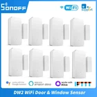 SONOFF DW2 WiFi Door Window Sensor Wireless Open/Closed Detector Smart Home Security Sync Status via eWelink APP Remote Alarm Description: Keep linkage with SONOFF smart devices to create various smart scene Turn on/off your light with an action Notify you when the door/window is opened Check the opening and closing status of door/window on APP Battery-level display and low-battery reminder Allow sharing the sensor with your family to monitor and control of your home Bluetooth low energy pairing Support to check history record on APP Low-power Wi-Fi transmission for more lasting work time Peel and stick installation, quick to use Specifications: Battery Model: AAA 1.5V Working Voltage: DC3V (2 x 1.5V battery) Quiescent current: ≤ 40 μA Wi-Fi: IEEE 802.11 b 2.4GHZ Material: PC V0