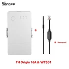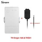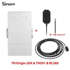 SONOFF TH Origin (the upgrade version of TH10/TH16) is a smart temperature and humidity monitoring switch with ESP32 chip, it keeps monitoring the temperature and humidity in real time, once they reach your preset threshold or the device's on/off state changes, you will receive the push notification on the phone. SONOFF TH Origin supports 20A/16A max loads, compatible with more home appliances. TH Origin support to check 6-Month Temp & Humi historical data accurate to the hour. In the smart scene, temperature, humidity, on, off support setting as the trigger, on, off, invert as execute actions. Support adding SONOFF devices to Home Assistant for control and automation through eWeLink add-on. SONOFF TH Origin supports three kinds of temperature monitor and humidity monitor sensors—THS01 Temp & Humi Sensor, DS18B20 waterproof Temp sensor, and MS01 Soil Moisture Sensor. The sensor connector is upgraded to RJ11, supporting hot-plugging making the connection more stable and reliable. So TH Origin has wide application scenes, like heated swimming pool, irrigation system, fermentation room, reptile terrarium, greenhouse grown, etc. The RL560 sensor extension cable can connect the SONOFF temperature and humidity sensors to extend your device's distance. THS01, DS18B20 can be extended to 60M, and MS01 Soil Moisture Sensor can be extended to 10M. You Safety, Our Responsibility 1. Strictly selects UL safety components and RoHS environmental protection materials to design the products. 2. The high-grade flame-retardant shell material is used. 3. Cut off high voltage generated by a lightning strike or unstable power supply when thundering. Different Sensors for Different Scenes The sensor connector is upgraded to RJ11, supporting hot plugging making the connection more stable and reliable. Reliable Temp & Humi Control TH supports LAN control, Wi-Fi disconnected will not affect the operation of your device. 6-month Temp & Humi History Data Support to review the temp & humi history data by hour, day and month. Past 6-month history data can be exported in .xlsx format and accurate to hour. Timely Notifications TH keeps monitoring the temperature and humidity in real time, once they reach your preset threshold or the device’s on/off state changes, you will receive the Push notification on the phone. Voice Control Note Note 1: THS01 and DS18B20 (RJ11) are the sensors of the RJ11 jack, just plug into TH Origin to use. Note 2: The RL560 is the new sensor extension cable of RJ11, it can connect the SONOFF temperature and humidity sensors to extend your device’s distance. DS18B20, THS01 can be extended to 60M, and MS01 soil moisture sensor can be extended to 10M. THS01 Sensor Sensor Type: Temperature & Humidity sensor Connector type: RJ11 4P4C Temperature Measuring Range: –40℃~ 85°C Humidity Measuring Range: 0~100%RH Cable Length: 50cm DS18B20 Sensor Sensor Type: Waterproof temperature sensor Connector type: RJ11 4P4C WorkigTemperature: -55℃~ 125℃ Length: 50cm RL560 Sensor Extension Cable Conductor resistance: max.10Ω Insulation resistance: min.5MΩ Length: 5m cable length & Max. 60m extendable length. MS01 Sensor Sensor Type: Soil Moisture Sensor Humidity Measuring Range: 0~100%RH Operating Temperature Range: 0℃~60°C Cable Length: 50cm
