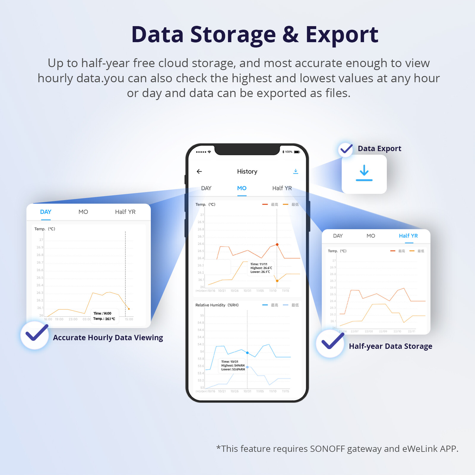 Store Categories Store Categories SONOFF DIY Smart Swicth Smart Wall Switch Smart Lighting Smart Accessories Smart Home Security Smart Plugs Home Appliances Gateway & Sensors NEXTION Basic Series Discovery Series Enhanced Series Intelligent Series Nextion Accessories Other SONOFF Zigbee Smart Temperature Humidity Sensor with App Measurement LCD Screen Product Description 【Remote Real-Time Monitoring】Monitor temperature and humidity in real time via the app or directly on the built-in display—remotely and reliably with coverage up to 120m/400ft (open space). 【High Accuracy & 5s Refresh Rate】Equipped with a Swiss-made sensor for precise measurements: ±0.2°C / ±0.4°F temperature accuracy and ±2% RH humidity accuracy. Data updates every 5 seconds for timely insights. 【Large LCD Display】Features a clear, easy-to-read LCD screen that dynamically shows real-time temperature and humidity. Intuitive icons also indicate room conditions and battery status at a glance. 【Instant App Alerts】Receive push notifications on your phone when temperature or humidity levels go beyond your preset comfort range. 【Data Logging & Export】Includes up to 6 months of free cloud storage. View hourly trends, check historical highs and lows, and export data in file format for further analysis. Note: SNZB-02D needs to be used with Zigbee Hub Payment Policy Shipping Policy Returns Policy Feedback About US Payment Policy We accept payment via Paypal only. Please settle the payment via PayPal within 3 days upon auction ended. You can left us a message about your special request. Shipping Policy Packages will be sent out with 24-48 hours (except holidays). Packages are only shipped via Paypal Address. We will not bear for duties or taxes. We offer free shipment via Economic method.we also offer express transportation,while you need to pay for the extra postage. If you have not received your items within 30 days,please contact us trough Ebay message,please contact us before you contact ebay. Returns Policy We accept returning with 30-days,please add your ebay ID into the package. You can receive the replacement or money back. Feedback We will appreciate for your positive feedbacks,if you have any questions,please Contact us firstly we will try our best to help you. Emails will be replied with 12 hours,replies will be delayed in holidays. About US Working time:Beijing Time From 9:00am to 6:00pm,from Monday to Friday. (we don’t work on weekends).we will get back to soon on working time. Copyright © 2023 Dianxiaomi