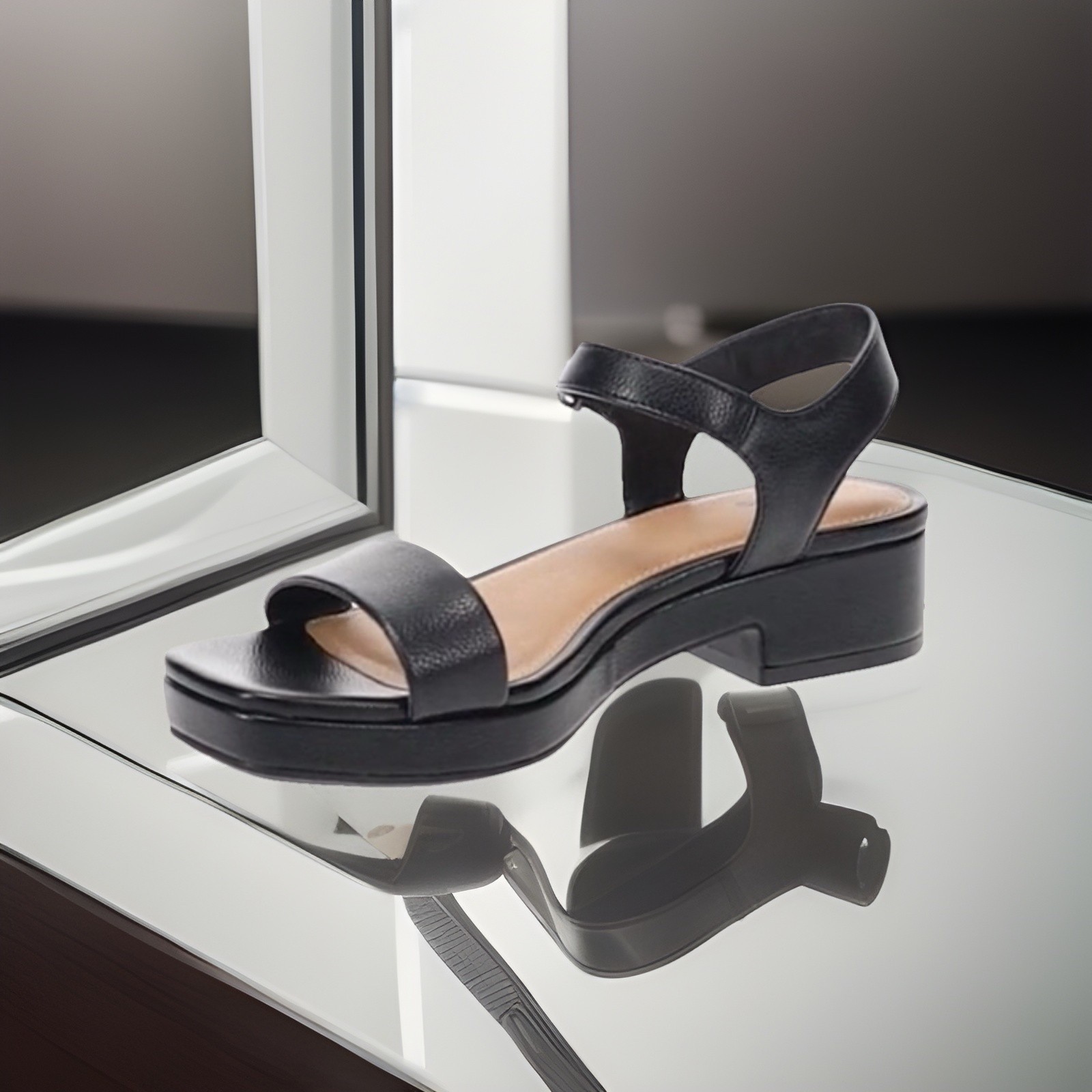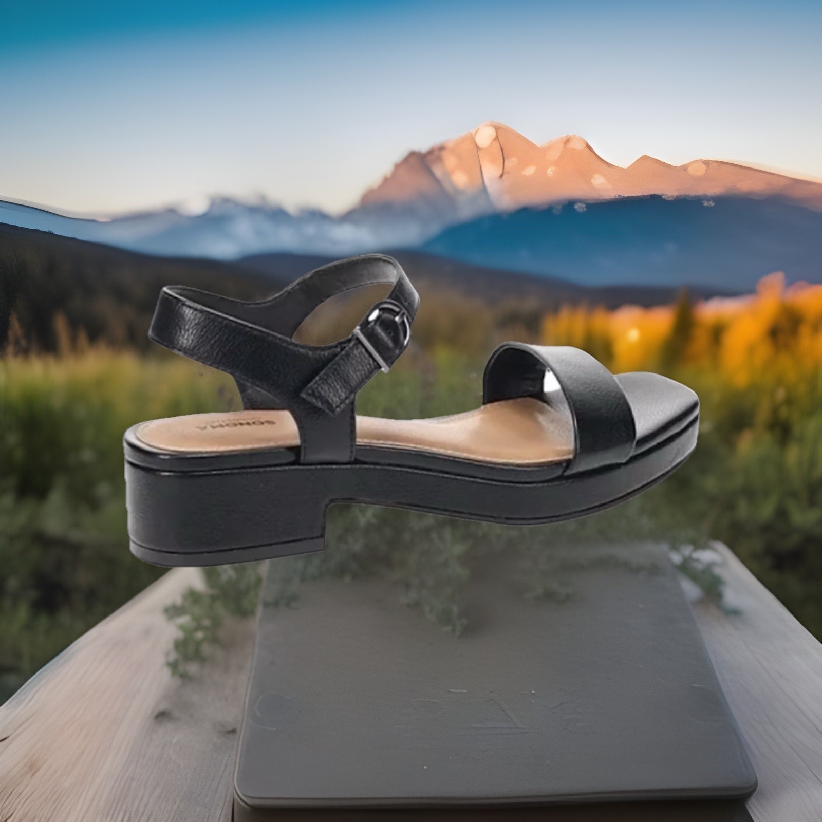 The SONOMA "TOSCA" Women's Black Platform Sandals in size US 6.5 are a stylish and versatile option for various occasions. Made with faux leather and featuring a slip-on style with a buckle closure, these sandals offer comfort with a cushioned footbed and ankle strap. The flat heel and solid black color make them a practical and chic choice for the warmer seasons of summer, fall, and spring. Perfect for casual outings, parties, or even formal events, these personalized sandals by Sonoma are a fashionable addition to any wardrobe.