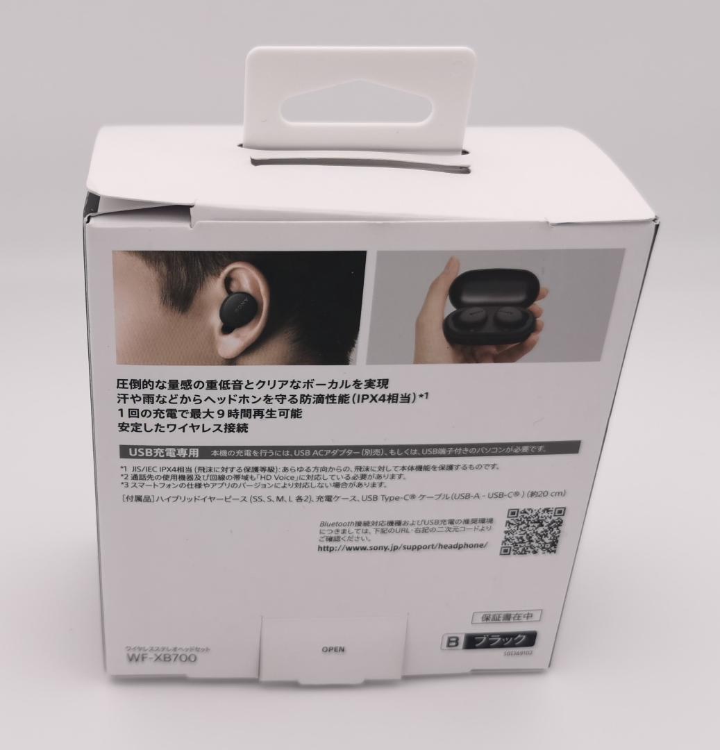 Description About This Items Long battery for convenient daily carry Equipped with a long battery life of 9 hours for the main unit alone and a total of 18 hours with one case charge.It also supports quick charging, enabling 60 minutes of playback with a 10-minute charge. Convenient Bluetooth function Enables hands-free calls (*) without taking out a smartphone, iPhone, or cell phone. Product Specifications Manufacturer: Sony Model name: WF-XB700 Connection Technology: Bluetooth Accessories: Dedicated charging case, USB Type-C cable (approx. 20cm), Hybrid earpieces (SS, S, M, L 2 each) Charging time: 2.5H Charging terminal: USB Type-C Product weight: 16 grams Water resistance level: Water-resistant (IPX4 equivalent) Color: Black Battery type: Lithium-ion Condition Good Condition.It is a beautiful item with no noticeable scratches or stains. Shipping We ship using Japan Post. Payment We usually ship within 5〜15 business days of receiving cleared payment. International Buyers - Please Note: Import duties, taxes and charges are not included in the item price or shipping charges.These charges are the buyer’s responsibility.Please check with your country’s customs office to determine what these additional costs will be prior to bidding/buying. These charges are normally collected by the delivering freight (shipping) company or when you pick the item up do not confuse them for additional shipping charges. I do not mark merchandise values below value or mark items as "gifts" - US and International government regulations prohibit such behavior.