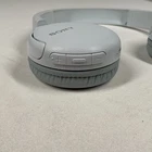 These SONY Wireless On Ear Headphones in White are the WH-CH510 model with Bluetooth 5.0 and are a stylish and convenient headphones perfect for on-the-go use. With a sleek white design and Bluetooth connectivity, these headphones offer a seamless listening experience. The padded on-ear design and comfortable headband make them ideal for long listening sessions. There is a volume control button on the right ear phone. Perfect for those who value both style and functionality in their headphones. The charging cord is included and plugs into both a USB or standard cable jack for charging. These used headphones are in very good condition with no damage or scratches.