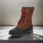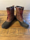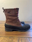 WORN ONLY SLIGHTLY!!! These are in nearly new condition!! No major wear or tear at all!! Only real sign of use is the crease on the tops! Sooo cute!!! Retails over $100! Grab this great deal! See all photos The SOREL Emelie 1964 Redwood Waterproof Leather Boots in women's size 10 feature a round toe shape, lace-up closure, and mid-calf shaft style. Made of blended fabric with a rubber outsole, these boots have a low block heel and are designed for winter, fall, and spring wear. The boots come in a solid redwood color with accents of lace and the brand's logo, combining functionality with style for travel, activewear, and casual occasions.