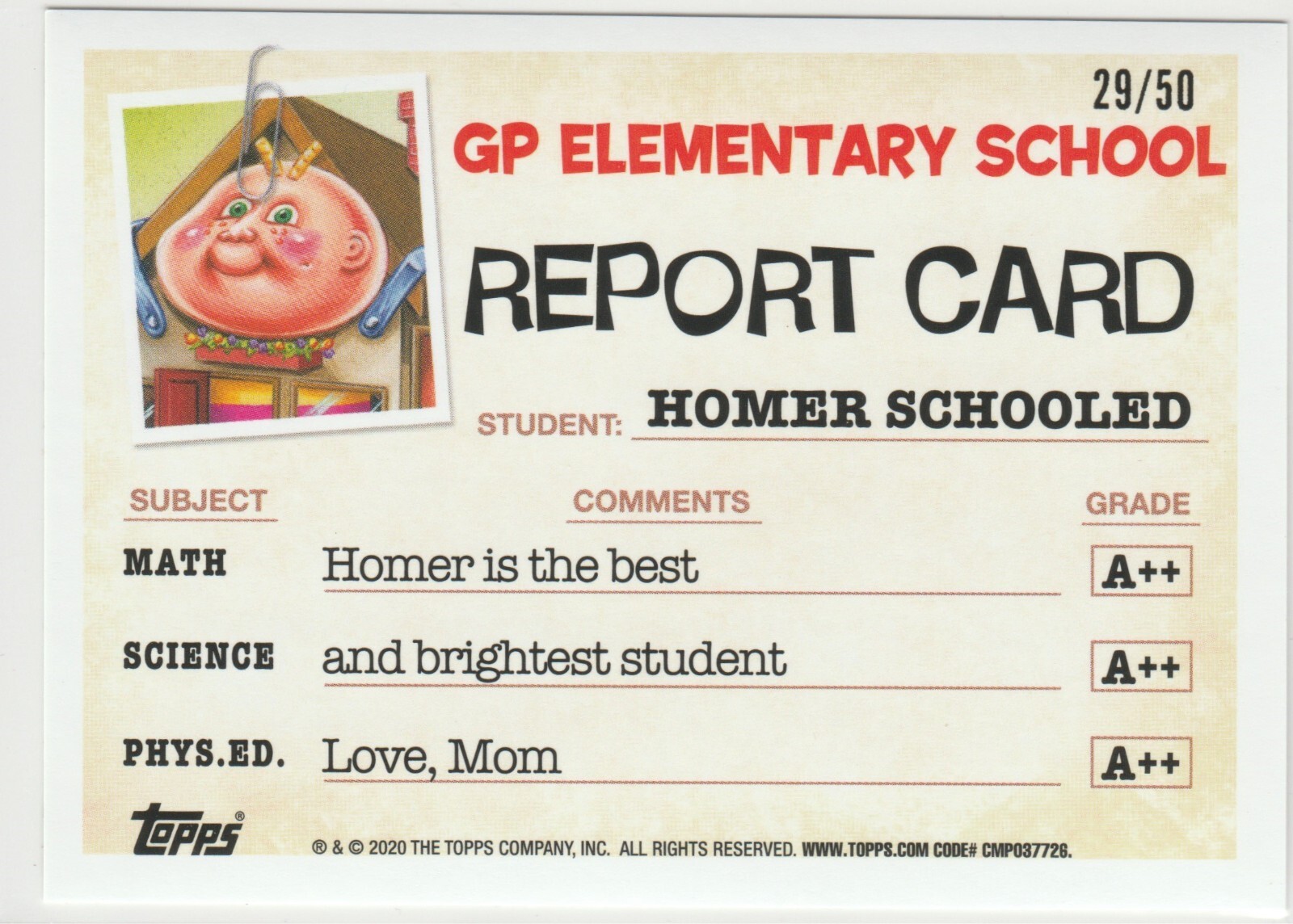 SP 29/50 Fool's Gold Parallel Homer Schooled #2a Garbage Pail Kids GPK 2020 Late To School trading card sticker