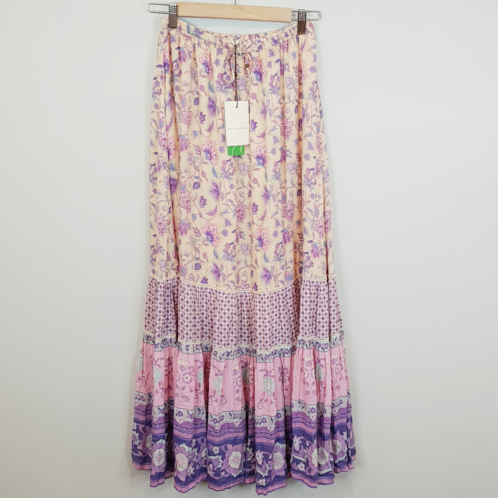 $ 104.28SPELL Womens Size S or 8 Bohemian Royale Castaway Hi Lo Maxi Skirt RARE