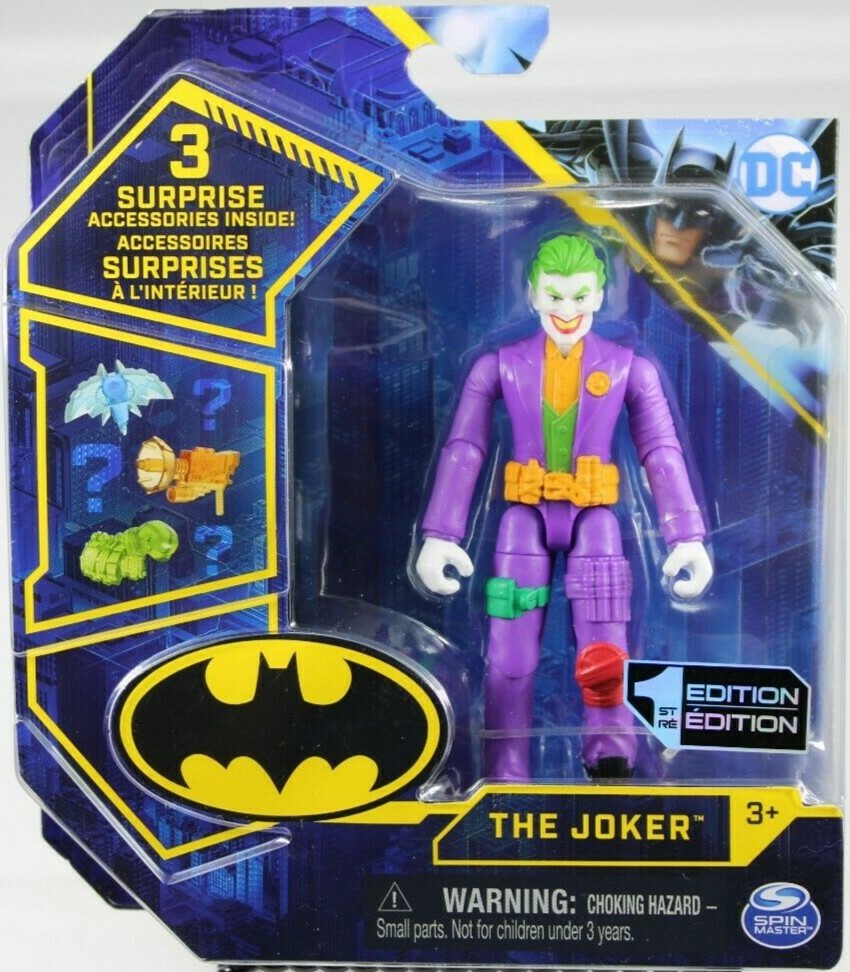 SPIN MASTER DC 1ST EDITION 4" THE JOKER ACTION FIGURE W 3 SURPRISE ACCESSORIES BRAND NEW SEALED DC COMICS SUPER VILLAIN THE JOKER ACTION FIGURE 1ST EDITION COLLECTIBLE FROM SPIN MASTERS SEALED NEW, COMES WITH THREE SURPRISE ACCESSORIES✨✨✨ 4 INCHES TALL AWESOME PAINT AND SCULPTURE FOR THIS SERIES PACKAGE IS IN GREAT SHAPE STAND NOT INCLUDED WOULD MAKE AN AWESOME GIFT ADD TO YOUR BATMAN COLLECTION Will ship to you with great care. Will ship to the United States and Protectorates via USPS International shipments will ship via Ebay's Global Shipping Program (GSP) International packages will ship within one business day to eBay's GSP. eBay's GSP will then ship the package internationally. Handling and Shipping times may vary with GSP. Brought to you by The VinKris Collection