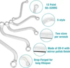 DURATECH S-Style Box Wrench Set, Metric, 5-Piece, 10mm to 19mm, 12 Point, CR-V Steel, with EVA Foam Tool Organizer About this item Quality Wrenches: Made of premium chrome vanadium steel with mirror polish finish. Chrome plated for rust-resistance, heat treated for maximum strength and Drop-Forged for long lifespan. High quality wrench set exceeds ANSI standard S-Style: The S-Shape wrenches with curved design for maximum access in confined areas, such as the mounting or dismounting parts in an automobile engine or in machinery, making your work more effortless 12 Points: The double 12-Point box end geometry is designed to grip flat sides of fastener heads, not corners, to prevent round-off and increase contact area and lock groove, easy application to the fastener Metric Size: 2 sizes per wrench provides more options with less to carry. Wrench sizes are stamped twice on both sides of handle for easier size identification: 10x11 mm, 12x13 mm, 14x 15 mm, 16x17 mm, 18x19 mm EVA Foam Tool Organizer: The wrench set comes with a EVA Foam Tool Organizer for convenient storage. Keeping wrenches in place for easy carry and take out