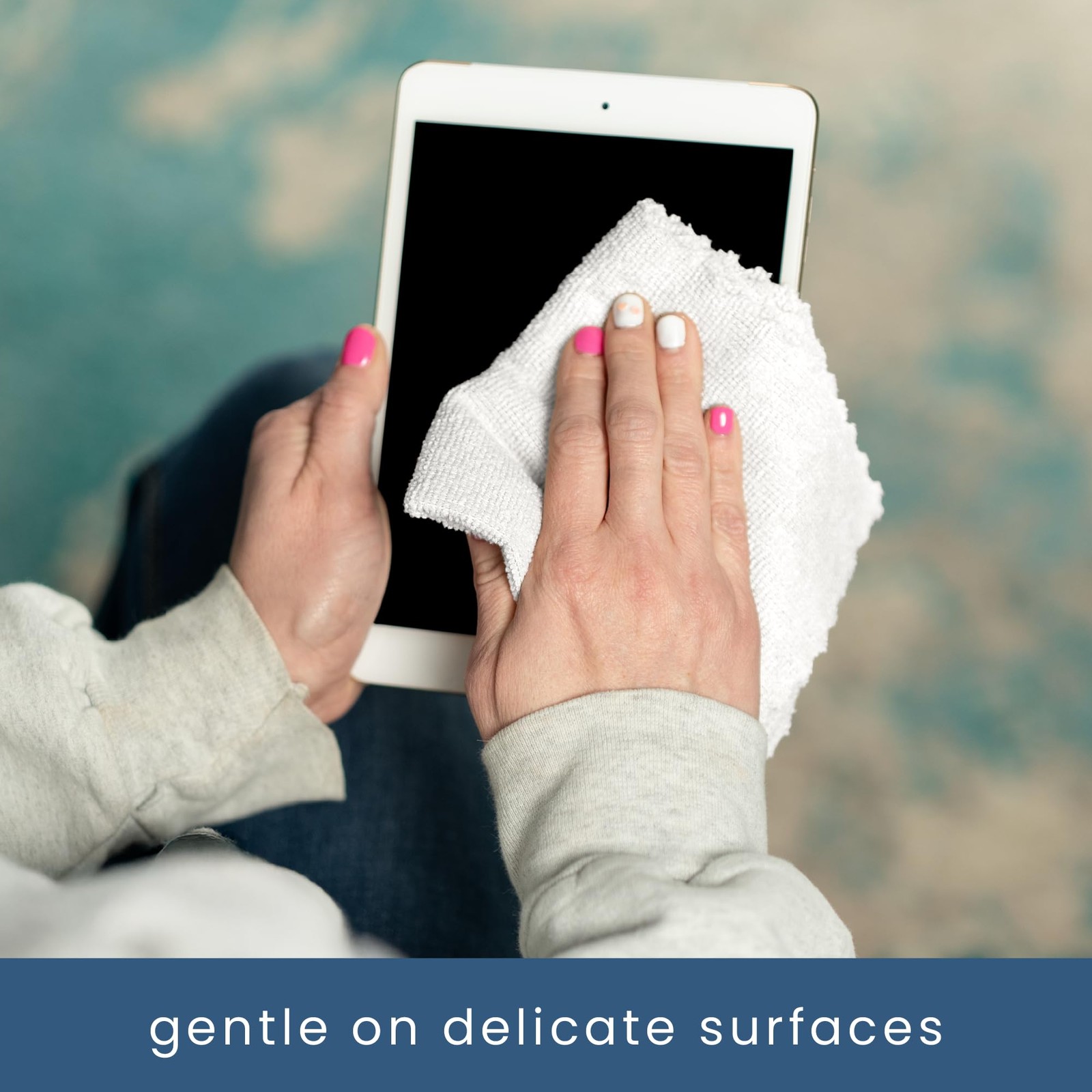 One 50 pack of S&T INC. Microfiber Towels Cleaning measuring 11.8 inches by 11.8 inches each; white rags for cleaning house are the perfect kitchen cleaner, or add to your car cleaning kit Ultra-soft, lint free microfiber cleaning cloths are the ideal surface cleaner, delicate and effective on wood, blinds for indoor windows, mirror and other glass surfaces, tile and more Add a microfiber cloth for cleaning to your cleaning supplies for use as bathroom or kitchen towels; a TV screen cleaner; try in place of a disposable dusting cloth on mops for floor cleaning Small microfiber cleaning cloths for car cleaning supplies are machine washable and durable, making them a great alternative to disposable paper towels or cleaning wipes Super absorbent cleaning towel can be used dry or with your favorite cleaning spray or dusting spray to clean, soak up spills and messes; also great for a dog paw cleaner The microfiber towels come in a sturdy storage box so the cloths are always in reach; pack the cleaning towels back in the box for easy storage