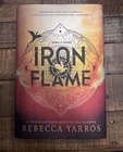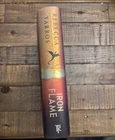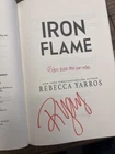 This is a brand new hardcover novel titled "Iron Flame" by Rebecca Yarros, part of "The Fourth Wing / Empyrean Series." It is signed by the author and features sprayed edges. The book is a special edition, first edition, limited edition with a dust jacket. With 640 pages, it falls under the genres of action, adventure, war & combat, fantasy, and romance, suitable for young adults and adults.