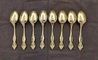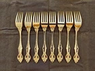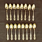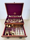 STANLEY ROBERTS ALEXIS GOLD PLATED STAINLESS FLATWARE 71 PIECES W/STORAGE CHEST One owner All of the pieces in this set are gold electroplated These have never been used There are 71 pieces of flatware and service ware and a storage chest This is a flatware set for 8 people The chest is a Tarnish Proof storage chest There are some tiny scratches on the outside of the chest On the back of the flatware and service ware it says - Stanley Roberts Alexis Stainless Japan There is a tiny bit of surface scratches on the flatware from stacking and storage Included in the 71 pieces there is a demitasse spoon by Truly Tasteful Stainless Steel Also included in the 71 pieces are 16 Iced Tea Spoons by Oneida Community Silver Gold Beethoven Gold Electroplate. On the back of the Iced Tea Spoons it says Oneida Community Please see the photos for gold loss and scratches A list of flatware and service ware in the storage chest and their approx. length: 8 Forks - 7 5/8" 16 Teaspoons - 6 1/4" 8 Salad Forks - 7" 8 Knives - 9 1/8" 8 Oval Soup Spoons - 7 1/8" 1 Butter Knife - 7 1/8" 1 Slotted/Pierced Serving Spoon - 8 3/4" 1 Sugar Spoon - 6 1/8" 1 Meat Serving Fork - 9" 1 Demitasse Spoon - 4 3/4" - by Truly Tasteful - Stainless Steel 1 Gravy Ladle - 6 5/8" 1 Serving Spoon - 8 1/2" 16 Iced Tea Spoons - 7 1/2" - by Oneida Silver - Gold Beethoven - Gold Electroplate Please see pictures, they are part of the description This item has always been in a smoke free air conditioned environment Payment is due at time of sale I do not offer refunds Please ask any questions that you may have before buying, I will be happy to answer them THANK YOU FOR LOOKING! HAVE A GREAT DAY! #443