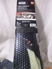 The STAR WARS Windshield Accordion Folding Sun Shade is a single piece windshield cover made of waterproof and UV-resistant polyester material. It comes with straps for attachment and is designed to fold for easy storage.