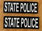 STATE POLICE Patch 8.5X3 Navy Cordura W/White Lettering Hook Back 2 pieces Silk Screen Printed Hook side of the Hook and loop in the back. PATCH375