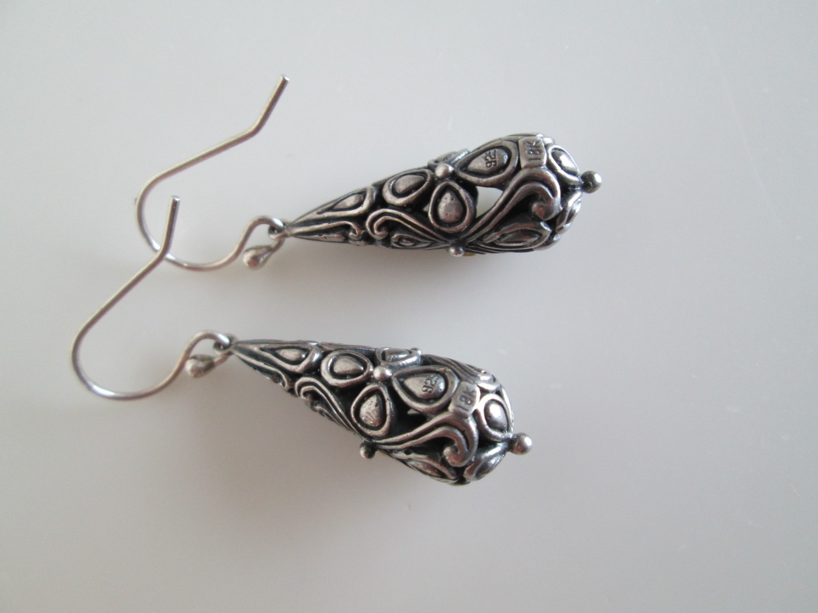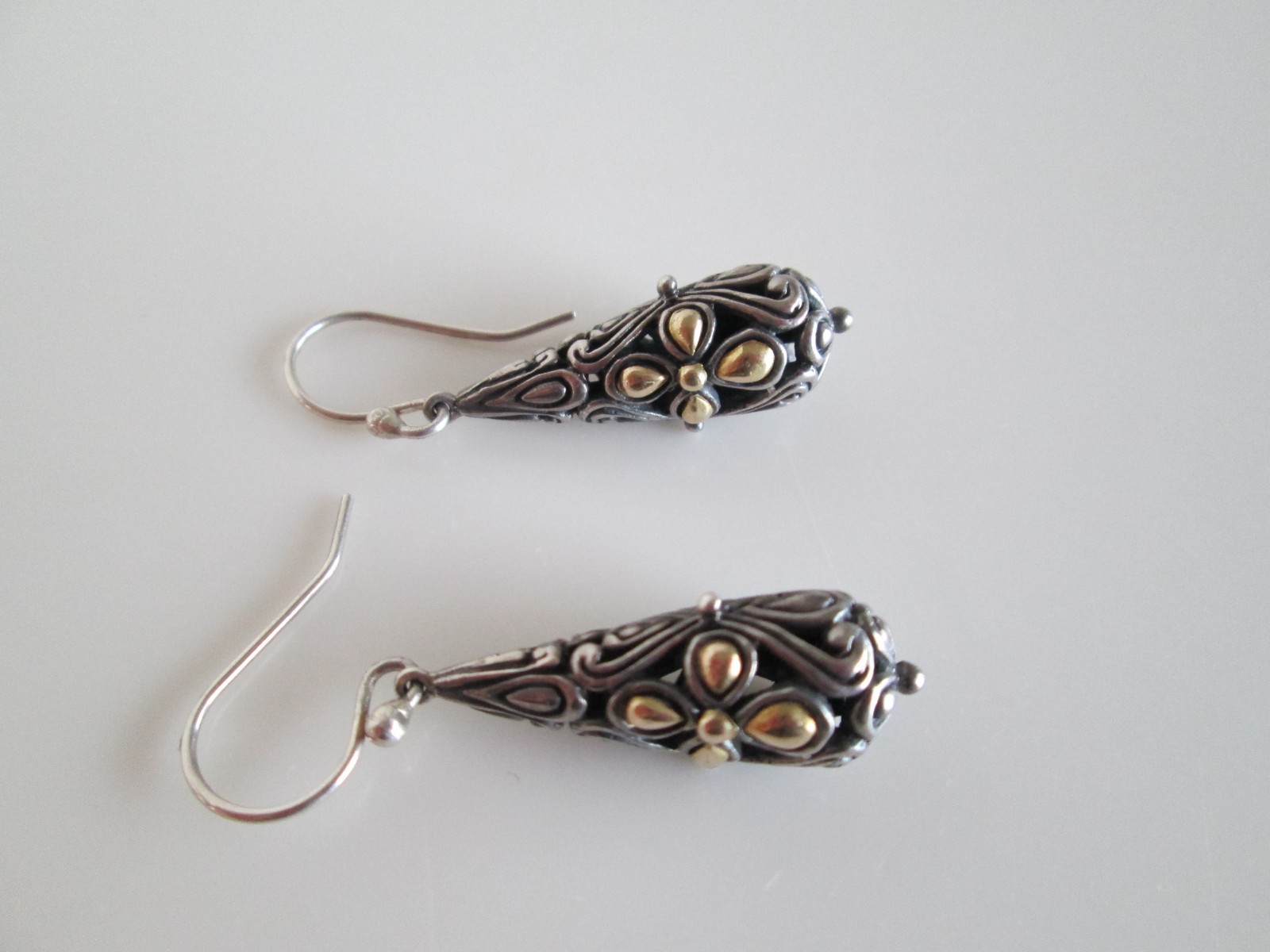 STERLING SILVER 18KT GOLD EARRINGS. IT MEAS URES APPROX. 1 1/2 INCHES LONG & 3/8 INCHES WIDE. IT WIEGHS APPROX. 7.6 GRAMS OR .24 TROY OUNCES TOTAL. Please look at all photos for actual item and condition. UNITED STATES SHIPPING /8 We offer combined shipping on multiple orders. In this event, please wait to receive a combined invoice before completing payment. You may noti0.23fy us via eBay message of your continued bidding to help us best assist you. We give up to 10 Days from first items ending date for combined orders, or an unpaid case will open. Once a payment is made no other orders can be combined with that order. We use the USPS shipping service through EBay so you can track your package right online. You will receive your tracking number via messages. We do offer LOCAL PICK UP INTERNATIONAL SHIPPING Please review the eBay Global Shipping Program before bidding. These orders will be subject to domestic shipping charges along with any taxes, tariffs or customs charges from the destination country. If you are not 100% satisfied with your item you may return within 30 days of received date. We do our best to present accurate information about every item we sell. If you have any questions please feel free to ask through message. WE APPRECIATE YOUR BUSINESS AND THANK YOU FOR VIEWING OUR LISTING!