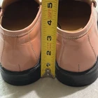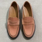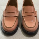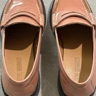 These STEVE MADDEN pink leather 'Madison' fairy retro penny loafers are a stylish and fun addition to any woman's shoe collection. With an almond toe shape and slip-on closure, these loafers are perfect for travel, parties, or casual outings. The pop of color and retro theme make them a standout choice for the summer, fall, or spring seasons. Made with durable rubber outsole material and featuring a synthetic lining, these loafers are not only fashionable but also comfortable and practical. Perfect for adding a touch of whimsy to your outfit, these loafers are a must-have for any fashion-forward woman. AS IS - Never Worn - Clean Sole Note: pin hole left shoe, crinkle on top right shoe...see photos
