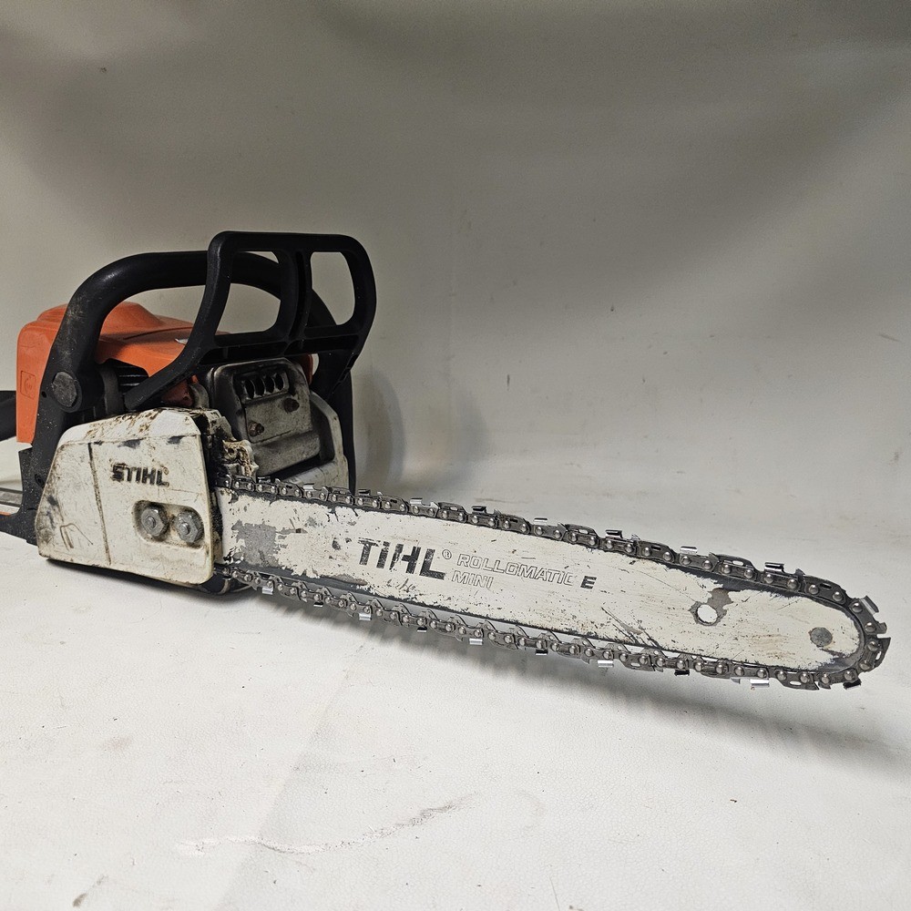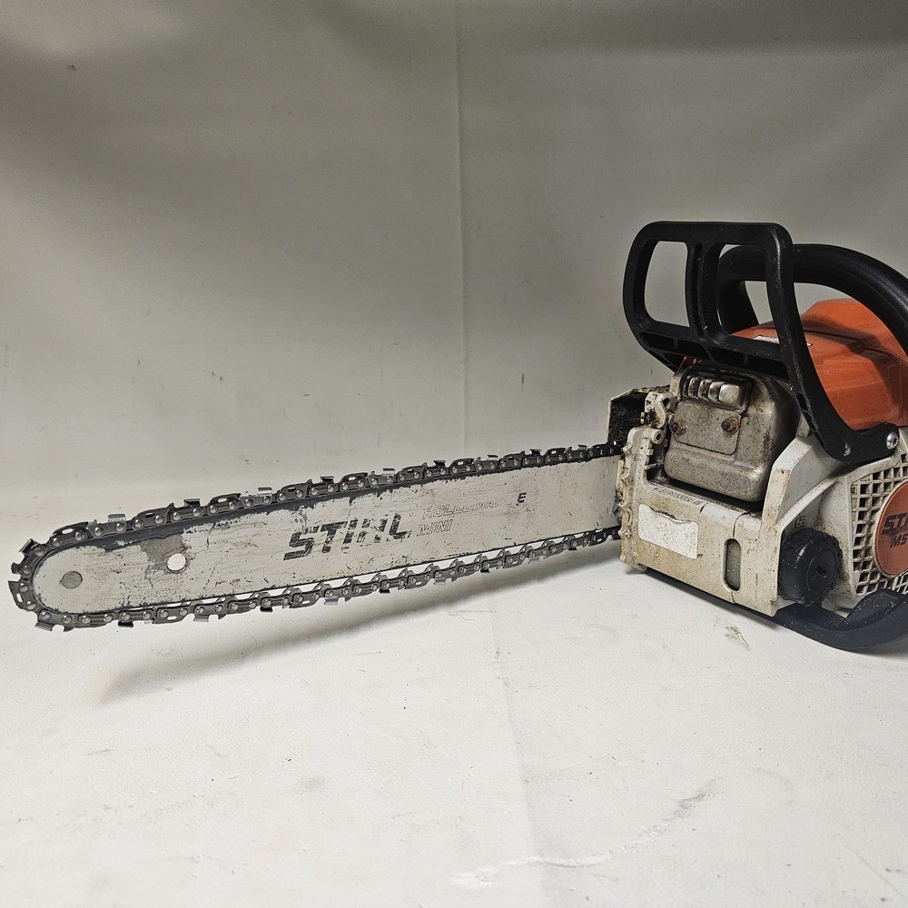 This pre-owned STIHL MS 170 chainsaw runs like a champ! Lightweight yet powerful, it cuts through wood effortlessly. Starts up easily and handles like a dream. Perfect for small jobs around the yard. Great value for the price—highly recommend!