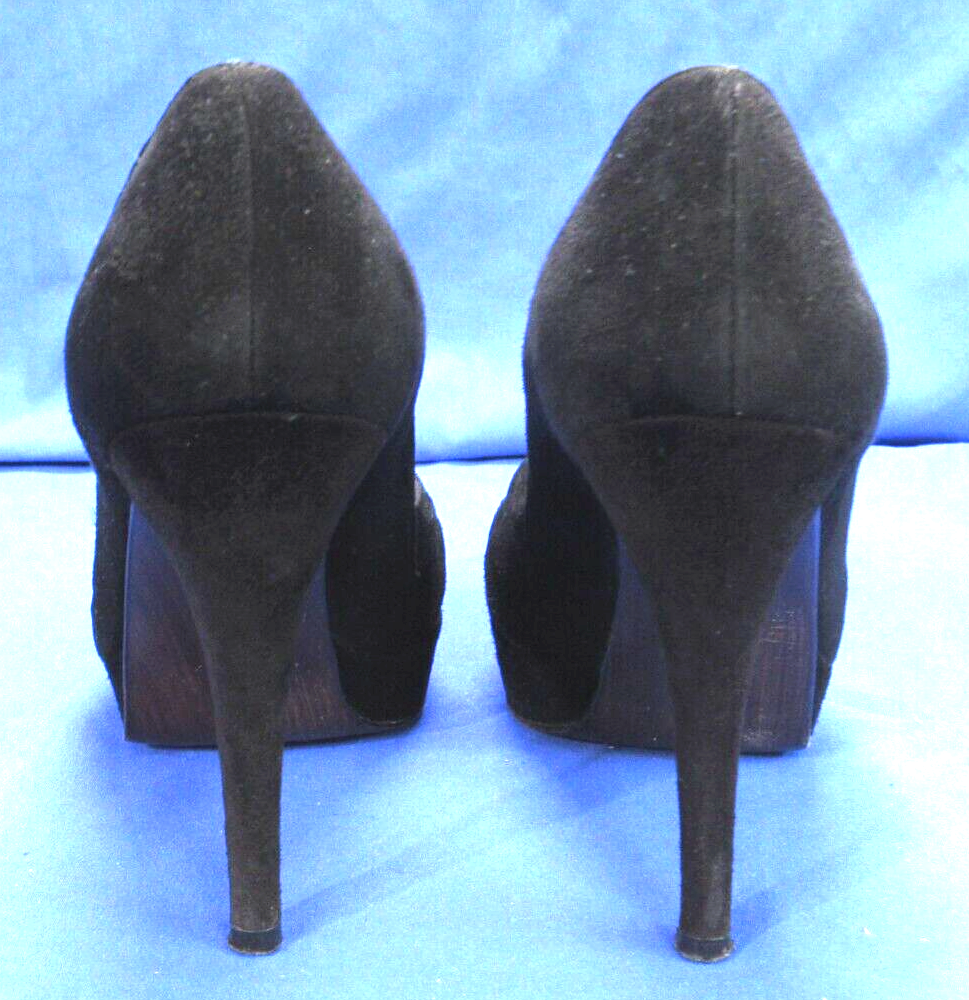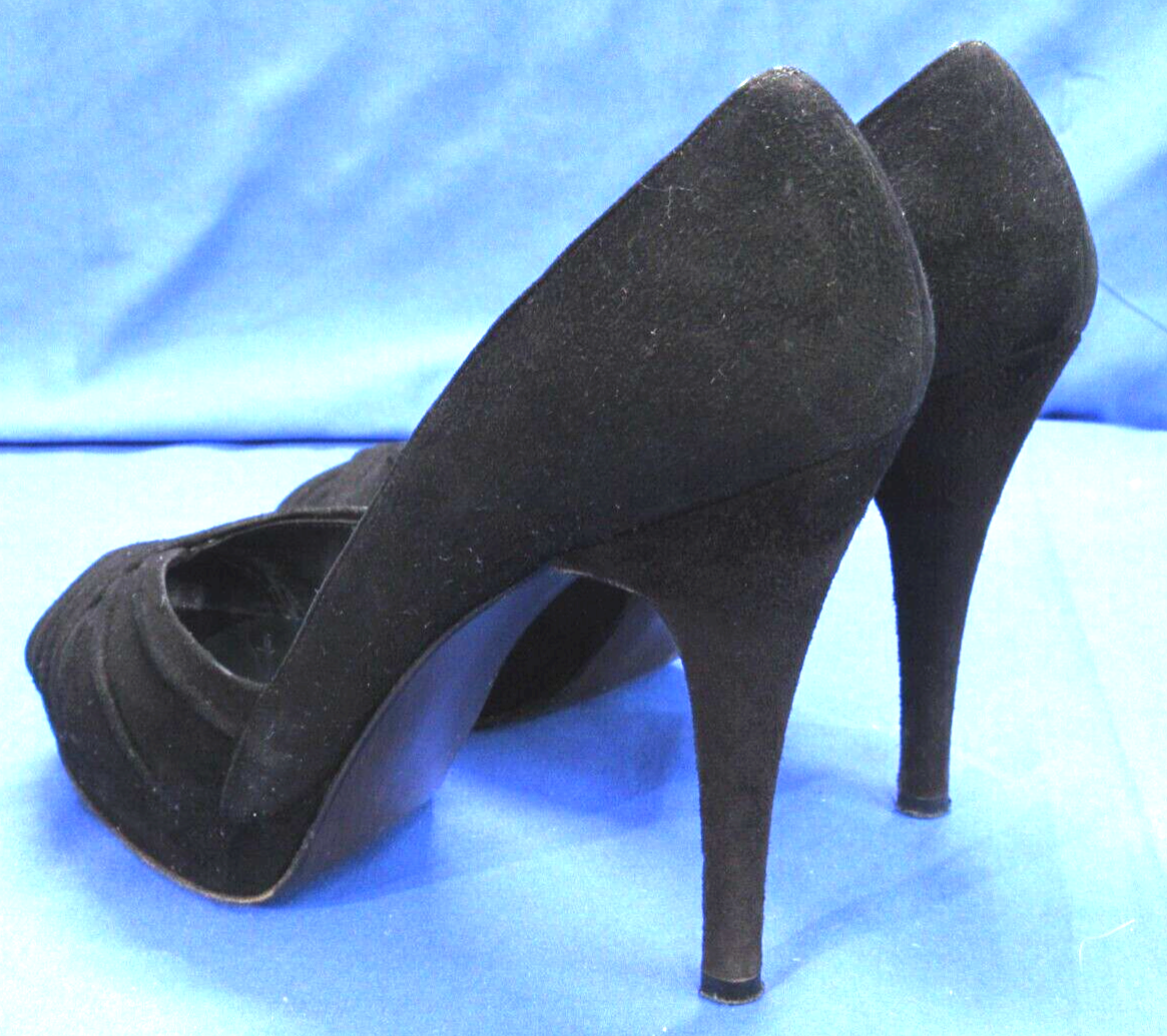 In very gently used condition. Material- Suede Heel Height- 4.5" We are so thankful for our customers! However, we have thousands of listings, and therefore receive hundreds of messages, every single day. So, if you are asking about a price drop, or a shipping price drop, or asking for extra measurements, or to add additional photos, please allow me to answer you here, No thanks. If your question is not one of those questions, we will be happy to answer you individually. YES...WE DO COMBINE DOMESTIC SHIPPING. Extra jewelry items ship for $2 each (except for large jewelry lots). We will refund the difference as we are mailing out.....we hope you enjoy shopping with us! We encourage you to read the description and check all photos.