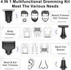 SURKER Body Trimmer Mens Electric Back Shaver Grooming kit Black Product Details Package Dimensions : 9.69 x 6.18 x 2.05 inches; 1.01 Pounds Item model number : RSCX9611 Batteries : 1 AAA batteries required. Manufacturer : SURKER Country of Origin : China Recommended Uses For Product: trimming, shaving Color: Black Hair Type: All Brand: SURKER Power Source: Battery Powered 【Versatile USE】This groomer/shaver kit includes 4 detachable heads:T-blade haircut trimmer head/nose trimmer head/body trimmer head/combination shaving head. Designed for not only for facial trimmings but also for below-the-waist grooming, like back shaving ,arms,legs,body hair.T-balde trimmer equipped 3 guide combs(1/2/3mm),dealing with the haircut,beard trimming,sideburns,precise trimming. 【Adjustable Extension Arm】Detachable extension assist arms with 180°Adjustable Angle design -Allowing you to reach even the most difficult middle and lower back areas when shaving back hair.Auxiliary arm function enables you to reach all areas of your back by yourself with ease and shave off all your back hair effortlessly. 【Two Speed Adjustable】Adjust the high and low speed according to the density of body hair.Powerful motor make every single pass remove hair with no snagging, providing an effective haircut for you. 【Battery Reminder &Travel Lock】Smart charging light indicates when the trimmer need to be charged / cleaned ; lights also shows lock/unlock state.Tracl- Lockg function(hold the on/off button for 2 seconds ) to avoid accidentally touching the switch, travel with convenient to carry.This machine should be charged through the base.Built-in rechargeable battery delivers up to 60-120 minutes of run time per charge by only about 1.5 hours charging. 【100% Waterproof&Cordless】Full body Waterproof Design & One-button ON/OFF Switch meet the waterproof function. You can rinse directly under the tap for easier cleaning.Cordless design combinated the ergonomic design gives a solid performance in both durability and comfort. 【Guidelines for use】Avoid prolonged discharging, the machine will automatically shut down every fifteen minutes of work, please wait for one minute before you can switch on the machine again.To maintain battery life, please charge and discharge the battery once every 1-2 months when the machine is not in use. For the beard trimmer blade:Please change the direction of the cutter head to match the use of the extension arm. Red Light Flash:In addition to the case where the machine is out of battery, the machine lock status will also flash red. Please press and hold the switch to unlock the machine.