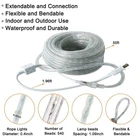 SURNIE Rope Lights Outdoor Waterproof Daylight White: LED 50FT Cuttable Outside Bright 110V Lighting Connectable Flexible Plug Cool Clear Tube, Indoor Deck Patio Xmas Camping Decor, Not Flat Strip Product Details Color: Daylight White Size: 50FT Brand: SURNIE MPN: SR11101-15-DW-US UPC: Does not apply EAN: Does not apply Color: Daylight White Brand: SURNIE Indoor/Outdoor Usage: Outdoor, Indoor Special Feature: Waterproof, Cuttable and connectable Light Source Type: LED Power Source: Corded Electric Light Color: Daylight White Theme: Rope Lights Occasion: Christmas, New Year, Birthday, Seasons, Halloween Style: Art Deco Product Dimensions : 600 x 0.4 x 0.4 inches; 3.75 Pounds Item model number : SR11101-15-DW-US Date First Available : April 8, 2019 Manufacturer : surnie store Customer Reviews: 4.4 4.4 out of 5 stars 2,814 ratings Color: Daylight White Brand: SURNIE Indoor/Outdoor Usage: Outdoor, Indoor Special Feature: Waterproof, Cuttable and connectable Light Source Type: LED Power Source: Corded Electric Light Color: Daylight White Theme: Rope Lights Occasion: Christmas, New Year, Birthday, Seasons, Halloween Style: Art Deco Material: Plastic Color Temperature: 6000 Kelvin Controller Type: Touch Control Connectivity Protocol: Power plug Connectivity Technology: Power plug Number of Light Sources: 540 Voltage: 110 Volts Wattage: 35 watts Included Components: a full set of installation kits, 1 accessory kit Item Weight: 3.75 Pounds Number of Items: 1 Item dimensions L x W x H: 600 x 0.4 x 0.4 inches Control Method: Touch Water Resistance Level: Waterproof Seasons: All Seasons Manufacturer: surnie store Part Number: HU-XI-89 Item Weight: 3.75 pounds Product Dimensions: 600 x 0.4 x 0.4 inches Item model number: SR11101-15-DW-US Assembled Height: 0.4 inches Assembled Length: 50 Feet Assembled Width: 0.4 inches Special Features: Waterproof, Cuttable and connectable Plug Format: Power plug Batteries Included?: No Batteries Required?: No Date First Available: April 8, 2019 CONNECTABLE and CUTTABLE: The round soft tube has a scissors cutting mark every 3.3 feet/1 meter. It can be cut as needed, equipped with two power plugs, and has two independent rope lights after cutting. Comes with a dedicated connector for connections up to 150 feet, perfect for various decorative lighting needs. (Note: Only cut once. The cut-out must be covered for weather protection!) WATERPROOF: Weatherproof grade IP65, outdoor use allowed in all seasons, bright cool white suitable for interior and exterior landscape decoration, such as RV awning, building, window, ceiling, fence, railing, camper, pool, stair, porch, balcony, backyard, walkway, pathway, gazebo, garden, etc. (Note: Plug is not waterproof and need extra waterproof when used outside) FLEXIBLE and DURABLE: The cold round tube can flexibly bend into various shapes for decorative occasions. Clear and thick plastic PVC tubes are 360 full illumination, have strong flexibility, are heat-resistant, and are energy-saving. High-quality LED chips, high-performance potting process, good water, and dustproof effect. Indoor durable lifetime of up to 50000 hours. SAFE to USE: Two UL-certified power plugs, with built-in fuses to protect from overcharging and short circuits, are safe and reliable. The operating voltage is 110V/120V. Disperse the rope light first, then plug in the power. WHAT YOU GET: 50 feet rope light, 2 power plugs, 1 accessory kit, 1 manual. Widely Used: Equipped with a set of separate installation accessories (clips, screws, cable ties), which can save you the trouble of installing the rope lights and don't worry about falling. Crystal clear PVC tube ensures consistent bright and uniform daylight white lighting. Great for birthday, Christmas, wedding, or Halloween party decor, and also perfect for daily and holiday use.