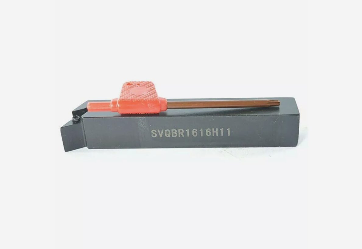 Features: High grip strength, impact resistance and strong, clear speed advantage in cutting off a large margin and processing. To maintain tight tolerances unmatched performance; Practical and a variety of processing environments, even in very dirty environments such as cast iron also has good features. User clamping and convenient way to replace, only a wrench to complete the replacement of the blade and pad. Accessories steel is good, long life, reducing the user cost of the tool. Specification: Brand new Model: SVQBR1616H11 shank D : 16mm shank L : 100mm Wrench : T15 Accept Insert : VBGT11T304-AK Color: as picture shows Package included: 1 x SVQBR1616H11 Tool Holder 10 x VBGT11T304-AK Carbide Insert