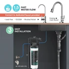 【Multi-Layer Filtration】Featured with innovative multi-stage filtration technology, SW10F under sink water filter system extrudes NSF 42&53 Certified filtration elements and combines sediment filter and coconut carbon block filter into a composite filter with 0.5 micron filtration accuracy. It can effectively reduce chlorine, lead, fluoride, heavy metals, VOCs, bad taste & odor and other harmful contaminants from water. 【3min DIY Install & Premium Dedicated Faucet】SW10F under sink water filtration comes with a Lead-free brushed stainless steel faucet and should be connected to the dedicated faucet provided. With the help of comprehensive manual and step-to-step install guide video, the sink filter system can be installed in a few minutes on your own! No additional plumbing service required. 【3s Replacement & Ultra-Long Service Life】 Each filter cartridge is capable of delivering clean and safe drinking water for 12-16 months, the filter life is nearly 2X longer than most carbon water filters on market! Thanks to advanced Auto Shut-off design, the replacement work only requires a simple twist and can be finished in a snap even without cutting off the water supply. Search “PLC10” for replacement filter. 【70% Money Saving & Green Choice】 Instead of throwing away the entire plastic housing, SW10F only requires to replace the inner core filter cartridge, thus remarkably cuts down the plastic wastes and lowers the future replacement costs. Besides, the system does not produce any waste water. Save your water bills and make the drinking water much more affordable. This is indeed a cost-effective water solution in the long run. 【Fast Flow Rate & Multi-Usage】 The tested full flow rate from SW10F under counter water filter can reach 1.5 gallon per minute @60psi. 2X Faster than other brands drinking water filter systems! The strong and stable water flow allows you to grab a 12oz cup of clean and tasty water in less than 4 seconds! Not only can be installed in your home kitchen, SW10F can also be used in your RV, office, bathroom and much more. Meet different water needs in variety of scenarios.