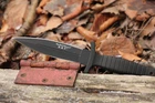 DIMENSIONS: 9 inch (22.9 centimeter) overall length with a blade length of 4.7 inches (12.1 centimeter) and a weight of 7.7 ounces DURABLE: Blade is made of reliable 7Cr17MoV high carbon stainless steel with a black rubber wrapped handle DEPENDABLE: Quick and easy access with the convenient belt or boot sheath making it ideal for everyday carry SECURE: Have confidence that the blade will not slip with the security of the hand guard BE PREPARED: Knife Features Lanyard Hole Makes For Ideal Neck Knife GUARANTEED: This product is covered by a Limited Lifetime Warranty. For questions or contact us on the Smith & Wesson website The Smith & Wesson® H.R.T. Full Tang Fixed Blade Knife is made out of a black high carbon stainless-steel dual-edged spear point blade with blood grooves. Its TPE rubber wrapped handle comes with lanyard hole and black leather belt/boot sheath.