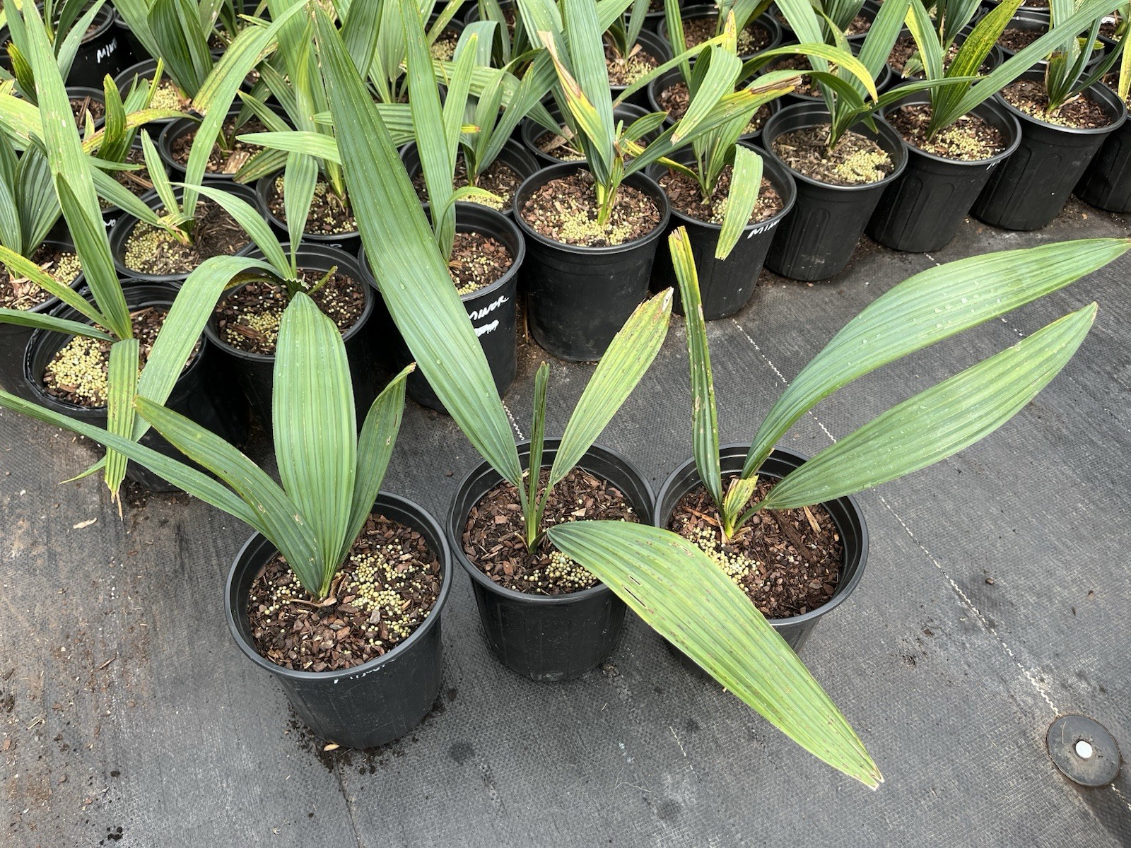 I’ve got a ton of these big 1 gallon Sabal minors. These are 4 year olds from seed, all starting to push out huge split leaves next. I’ve started potting them up to 3 gallon. Wanted to give everyone one last shot at getting them as 1 gallons. You will get 3 of these 1 gallon Sabal minors shipped in their pots in one box, for the price of 2!!!! Take advantage of this great summer special! These are really getting big now that the heat has kicked in. Almost watching these grow everyday in the greenhouse