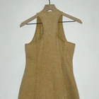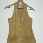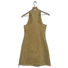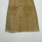 Sadie & Sage Denim Dress Women's Size Small Mustard V-Neck Button Front Raw Hem Brand: Sadie & Sage Size: Small Style: Dress Color: Mustard Condition: Good Preloved Condition Short, fitted, sleeveless dress in stretch denim with a v-neck front and back and a button down as closure. Approximate flat lay measurements Pit to pit 15in Waist 14in Length 33in