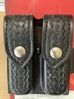 Safariland 77 Double Magazine Pouch For Glock 19, Glock 23 Basket Weave - 77-283-4 A top-of-the-line magazine pouch, the Safariland model 77 is designed to carry two magazines of ammunition on a 2.25 (60mm) duty belt. The model 77 features both vertical and horizontal belt slots, allowing it to ride in either a vertical or low-profile horizontal position. A new magazine tension screw located between the two pouches allows for easy magazine retention adjustment. It also has wider radius edges. Gun Fit- For Glock 19 Gun Fit- For Glock 23 Vertical/horizontal belt slots for regular/low-profile position Tension screw allows you to adjust magazine retention Span between pouches plus low cut allow for a quick and easy draw Color Black Finish Basket Weave Fit Code 283 Hardware Chrome Option Belt Loop