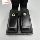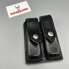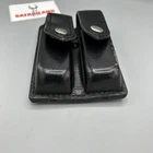 Fits H&K MK23 MARK 23 .45 AC Will also fit HK45 and USP mags. 77 - DOUBLE MAGAZINE POUCH The Model 77 Double Magazine Pouch is designed to carry two magazines on a 2.25" (58mm) duty belt. The 77 features both vertical and horizontal belt slots, allowing it to ride in either a vertical or low-profile horizontal position. A magazine tension screw located between the two pouches allows for easy retention adjustment. It's constructed of rugged SafariLaminate™ and is available in several scuff-resistant finishes with four different closures. These are used mag holders which means they are not new. They had marks and scratches and use on them. Some have silver and some have brass buttons on them. Whichever one pops up to the top is the one you will receive as we have a bunch. Thx. Loc: eb3/isle3/silver shelf/3/25/23