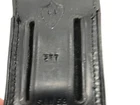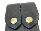 Safariland double magazine pouch Black leather. Fits S&W model 59, .45 Auto / Browning 9mm & similar magazines Interior dimensions are approximately 3" X 5/8" x 5" fits a belt with a width up to 2-3/8" *Leather should be conditioned and oiled before use to extend the life of the holster.