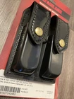 This Safariland Model 77 Double Magazine Holder Duty Pouch is perfect for pistols made by Beretta, Smith & Wesson, Heckler & Koch, GLOCK, and SIG SAUER. It comes in a sleek black color and can be attached to a belt for convenient carrying. The pouch is designed to hold two magazines and is suitable for duty purposes. The brand, Safariland, is well-known for producing high-quality holsters, belts, and pouches, making this magazine pouch a reliable choice for gun enthusiasts. Whether you're going on a hike or performing your daily duties, this pouch is a great addition to your gun accessories.
