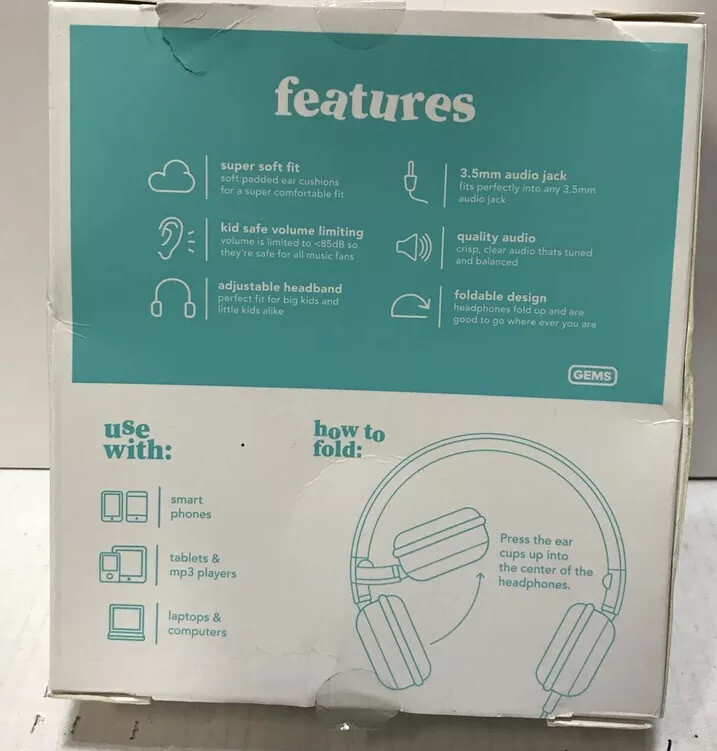 📀 Gems Wired On-Ear Headphones Kids Safe Volume Listening-Black Soft FitPadding. Shipped with USPS First Class. Distressed box