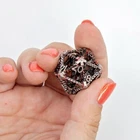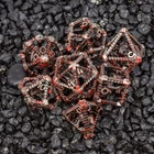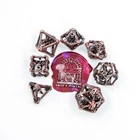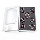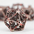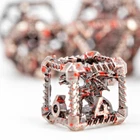 Unleash the dragon within with Sage's Draconic Prison Dice Set! This exquisite hollow-metal 7-dice set features tiny metal dragons trapped inside a dice shaped cage. Will you release the beast, or keep it trapped to use its power for yourself? Infuse your next tabletop game with the essence of these unique and intricate dice. This set features silver metal with blood splatter paint. Great for most tabletop RPG games such as Dungeons and Dragons, Pathfinder, and Shadowrun Set includes one D20, D12, D10, D00, D8, D6, and D4 Material: zinc alloy Color/style: silver dragon cage blood Oversized for exceptional feel and rolls Includes complementary Sage's Portal tin box Ships out of US