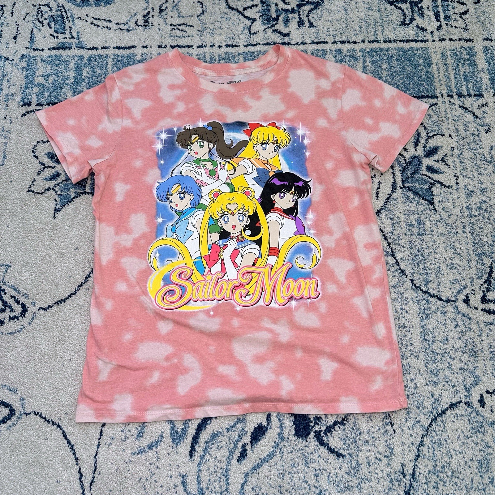 Super cute vintage style Sailor Moon tie dye graphic tee! Fits a little oversized, would look super cute with some leggings for a casual outing. 60% cotton, 40% polyester. Minor stains shown but not super noticeable. Standard wear.