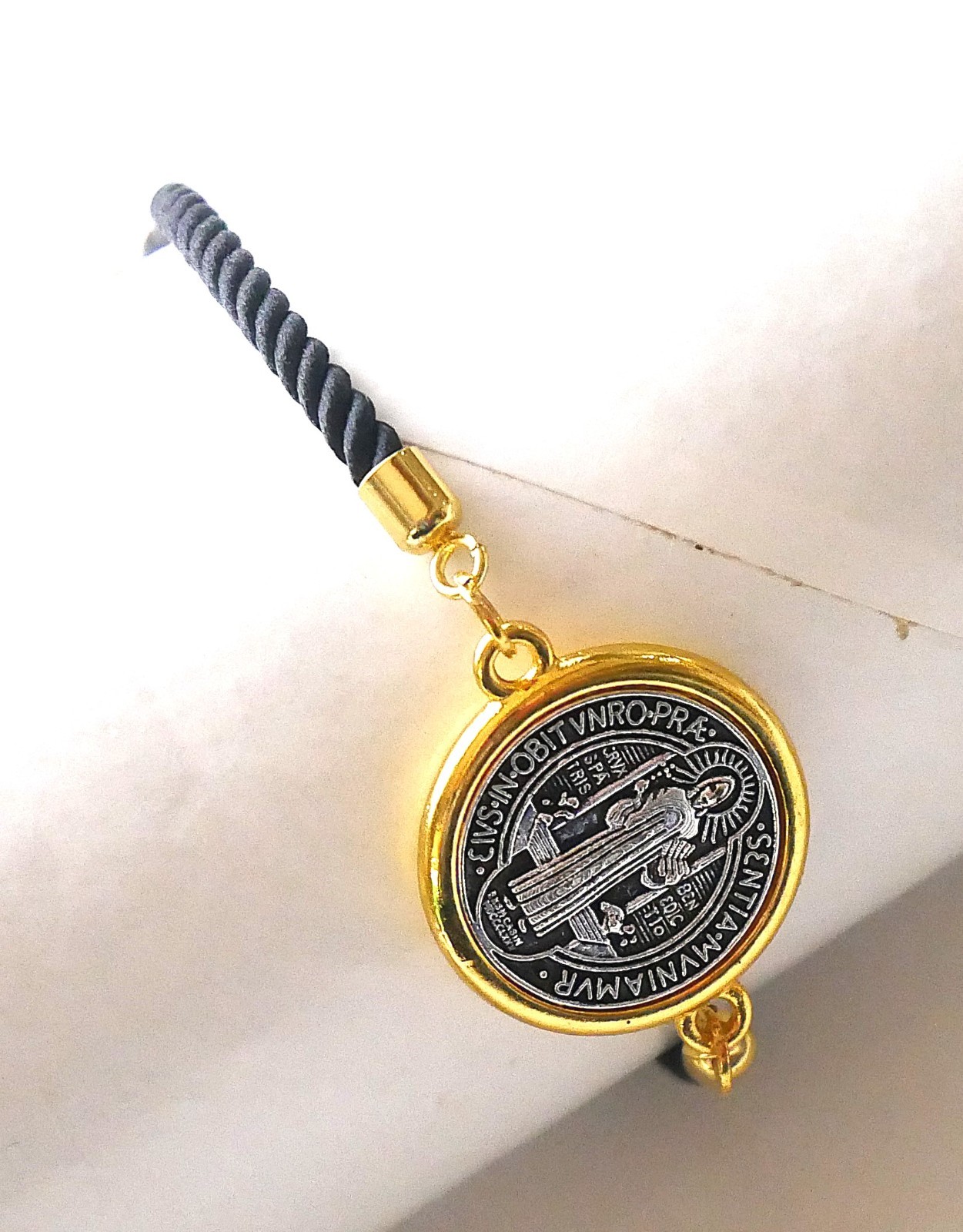 Love this bracelet! The black cord is sleek and durable, and the St. Benedict medal adds a meaningful touch. Perfect size—adjustable and comfortable for daily wear. The gold/silver tone looks elegant, and the craftsmanship is solid. Great for faith-based style or as a thoughtful gift. Highly recommend!