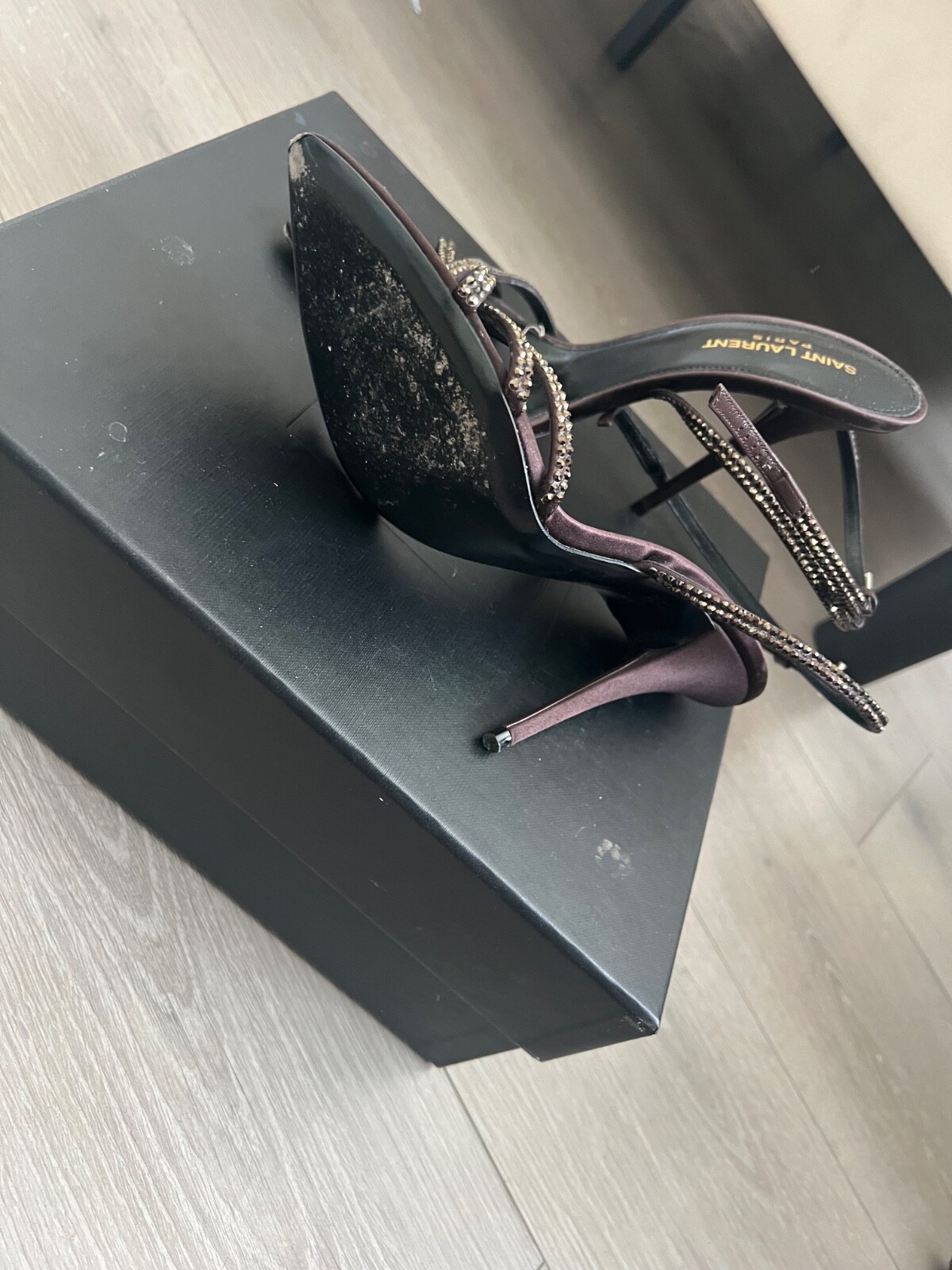 These heels are absolutely stunning! The fit is perfect for my size 6.5 feet, and the rich brown color pairs beautifully with everything. The open toe adds a sexy yet classy touch, making them ideal for both work and nights out. Saint Laurent never disappoints—these pumps feel luxurious, look expensive, and get endless compliments. Worth every penny!