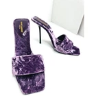 Saint Laurent Baliqua 105 Velvet Mule Sandals Malva Purple High Heel Designer Shoes size EU 37.5 Excellent Preowned condition! Minor glue residue on bottom sole No box Saint Laurent Baliqua 105 Mule Sandals, crafted in sumptuous velvet with a striking malva purple hue. Featuring a sleek slip-on mule silhouette and a bold 105mm high heel, these sandals embody modern elegance with a touch of glamour. Perfect for evening occasions, cocktail parties, or adding a statement finish to chic daytime looks, these luxury sandals reflect Saint Laurent’s signature sophistication. A must-have for any designer shoe collection. Measurements are approximate #SaintLaurent #YSL #BaliquaMules #VelvetSandals #LuxuryShoes #DesignerHeels #MalvaPurple #HighHeelSandals #SaintLaurentShoes #MuleSandals #EveningShoes #YSLStyle #LuxuryCloset #LuxuryShoes #GucciStyle #chanelObsession #EveningShoes #CocktailHeels #WeddingGuestStyle #MadeInItaly #StatementHeels #PointedToePumps