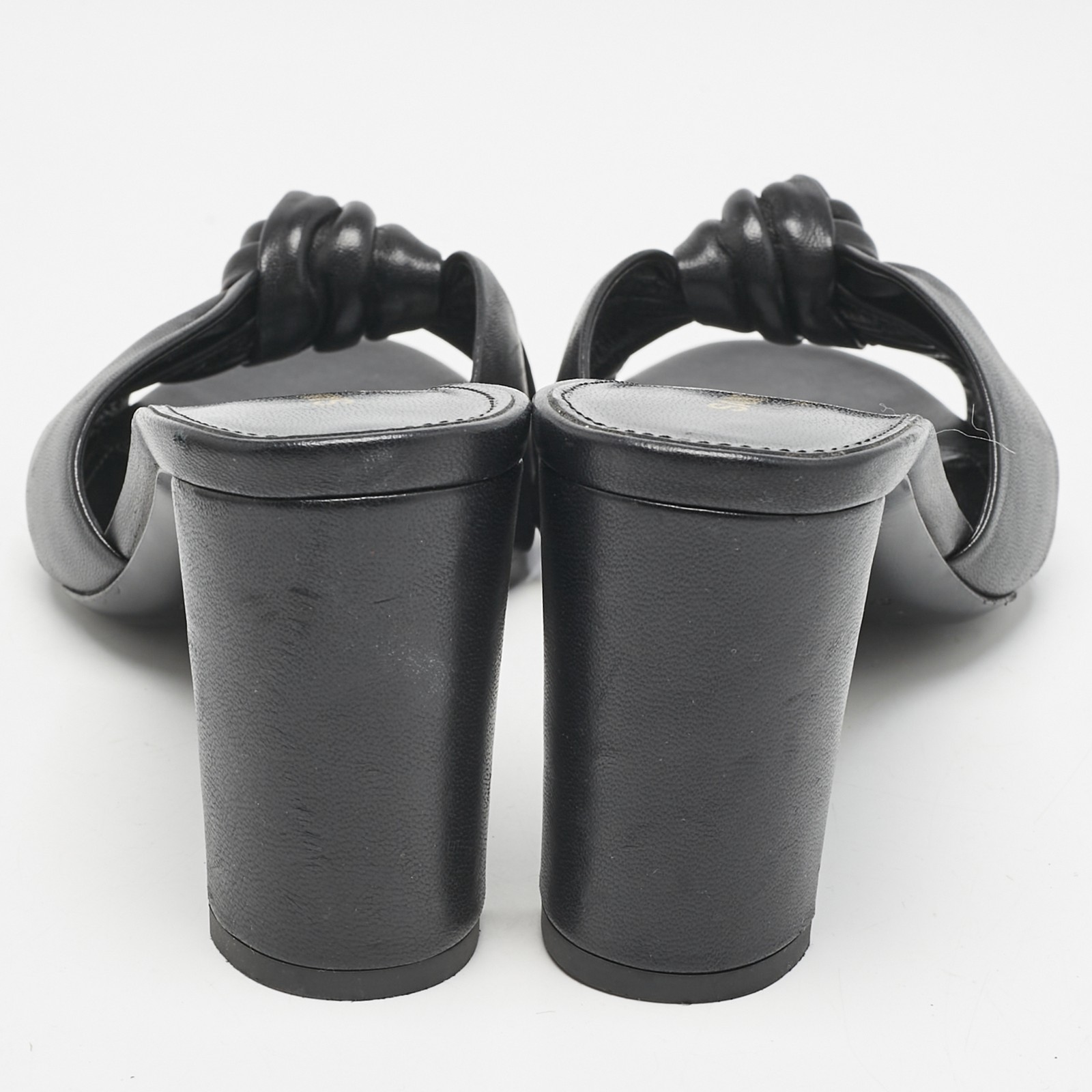 With their knotted leather straps and block heels, these Saint Laurent Bianca slides offer both comfort and effortless chic. They transition seamlessly from casual brunches to summer nights out.Certified by The Luxury Closet - This item has gone through a detailed authentication process overseen by our experts. We offer a lifetime guarantee of authenticity on all our items. Import duties, taxes and charges are not included in the item price. These charges are the buyers responsibility. Please check with your country’s customs office to determine what these additional cost will be prior to buying. Our eBay Store About Us Contact Us Add to Favorite Sellers Saint Laurent Black Leather Bianca Slide Sandals Size 36 $260.7 With their knotted leather straps and block heels, these Saint Laurent Bianca slides offer both comfort and effortless chic. They transition seamlessly from casual brunches to summer nights out. Product Details Brand Color Black Dimensions Material Leather Size 36 Outsole Width 8 cm Outsole Length 22 cm Heel Height 7.5 cm Includes The Luxury Closet Packaging Certified by The Luxury Closet This item has gone through a detailed authentication process overseen by our experts. We offer a lifetime guarantee of authenticity on all our items. How We Check The in-house team of experts at The Luxury Closet is highly trained to verify the authenticity and the condition of the luxury products. They ensure that only 100% authentic items are put on sale.The evaluation process is unique with its own mix of assessment criteria and differs according to the category. Each item is evaluated based on the following combination of hallmarks, hardware, stitching, symmetry, material, craftsmanship, stamping, codes, hologram stickers, and packaging. Our authenticators also check if the items have been modified or amended (e.g., aftermarket diamonds, replaced batteries, repaired bags, etc.) International Buyers Import duties, taxes and charges are not included in the item price. These charges are the buyers responsibility. Please check with your country’s customs office to determine what these additional cost will be prior to buying.