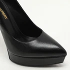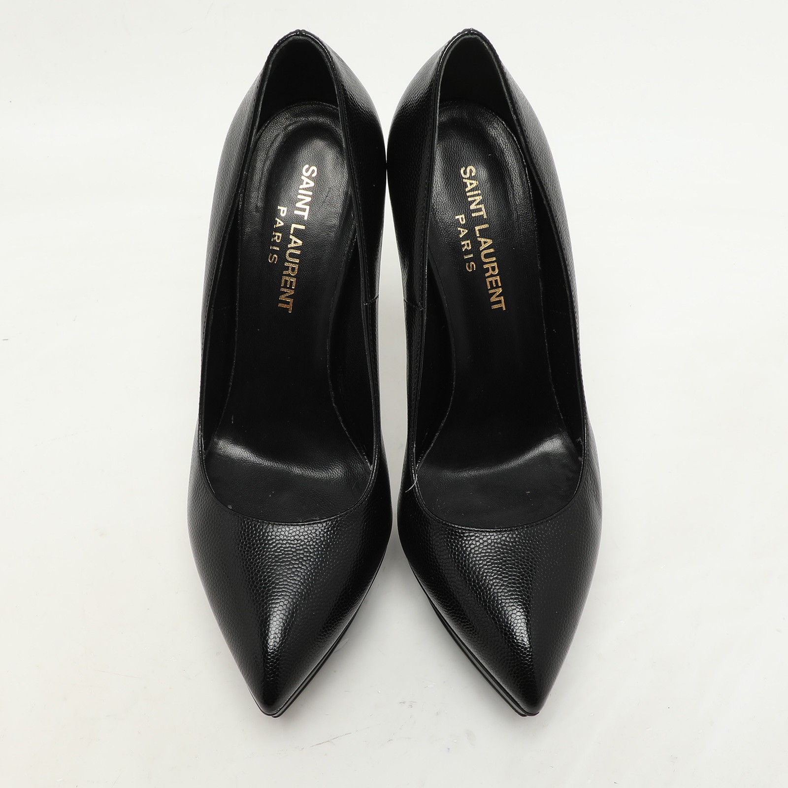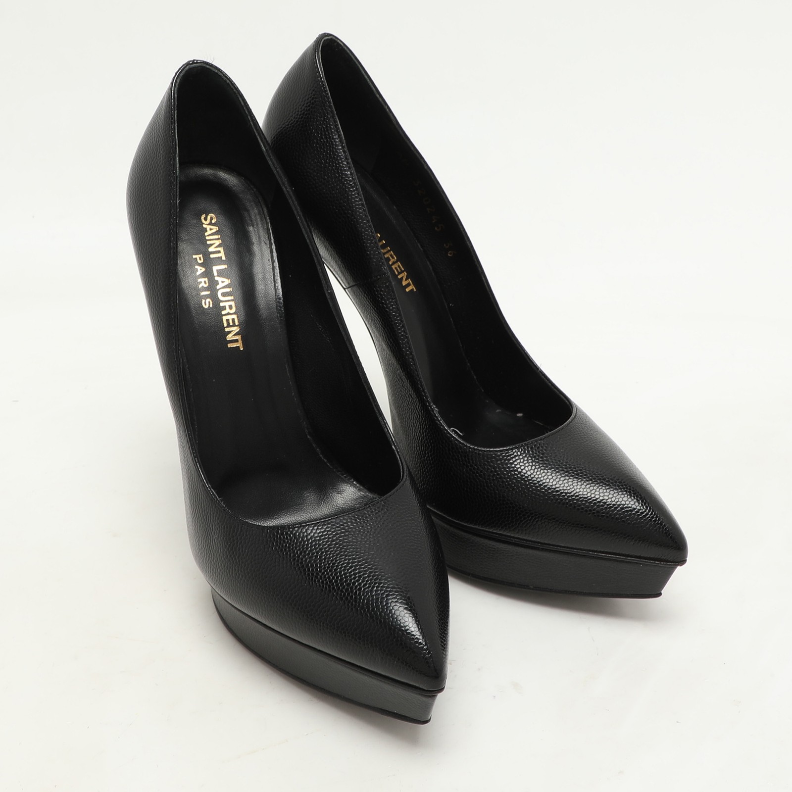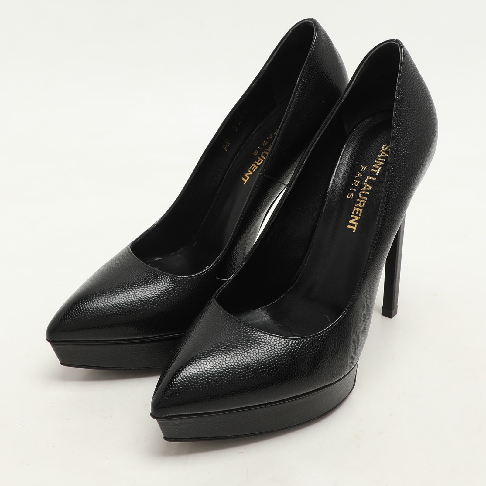 Indulge in timeless elegance with these black leather pumps. Expertly crafted in Italy, theyre a testament to luxury and sophistication. The sleek exterior, combined with a plush leather lining and insole, promises ultimate comfort for the modern woman. A subtle platform adds a touch of height without compromising grace.Certified by The Luxury Closet - This item has gone through a detailed authentication process overseen by our experts. We offer a lifetime guarantee of authenticity on all our items. Import duties, taxes and charges are not included in the item price. These charges are the buyers responsibility. Please check with your country’s customs office to determine what these additional cost will be prior to buying. Our eBay Store About Us Contact Us Add to Favorite Sellers Saint Laurent Black Leather Janis Pumps Size 36 $281.6 Indulge in timeless elegance with these black leather pumps. Expertly crafted in Italy, theyre a testament to luxury and sophistication. The sleek exterior, combined with a plush leather lining and insole, promises ultimate comfort for the modern woman. A subtle platform adds a touch of height without compromising grace. Product Details Brand Color Black Dimensions Material Leather Size 36 Outsole Width Outsole Length Heel Height Includes Certified by The Luxury Closet This item has gone through a detailed authentication process overseen by our experts. We offer a lifetime guarantee of authenticity on all our items. How We Check The in-house team of experts at The Luxury Closet is highly trained to verify the authenticity and the condition of the luxury products. They ensure that only 100% authentic items are put on sale.The evaluation process is unique with its own mix of assessment criteria and differs according to the category. Each item is evaluated based on the following combination of hallmarks, hardware, stitching, symmetry, material, craftsmanship, stamping, codes, hologram stickers, and packaging. Our authenticators also check if the items have been modified or amended (e.g., aftermarket diamonds, replaced batteries, repaired bags, etc.) International Buyers Import duties, taxes and charges are not included in the item price. These charges are the buyers responsibility. Please check with your country’s customs office to determine what these additional cost will be prior to buying.