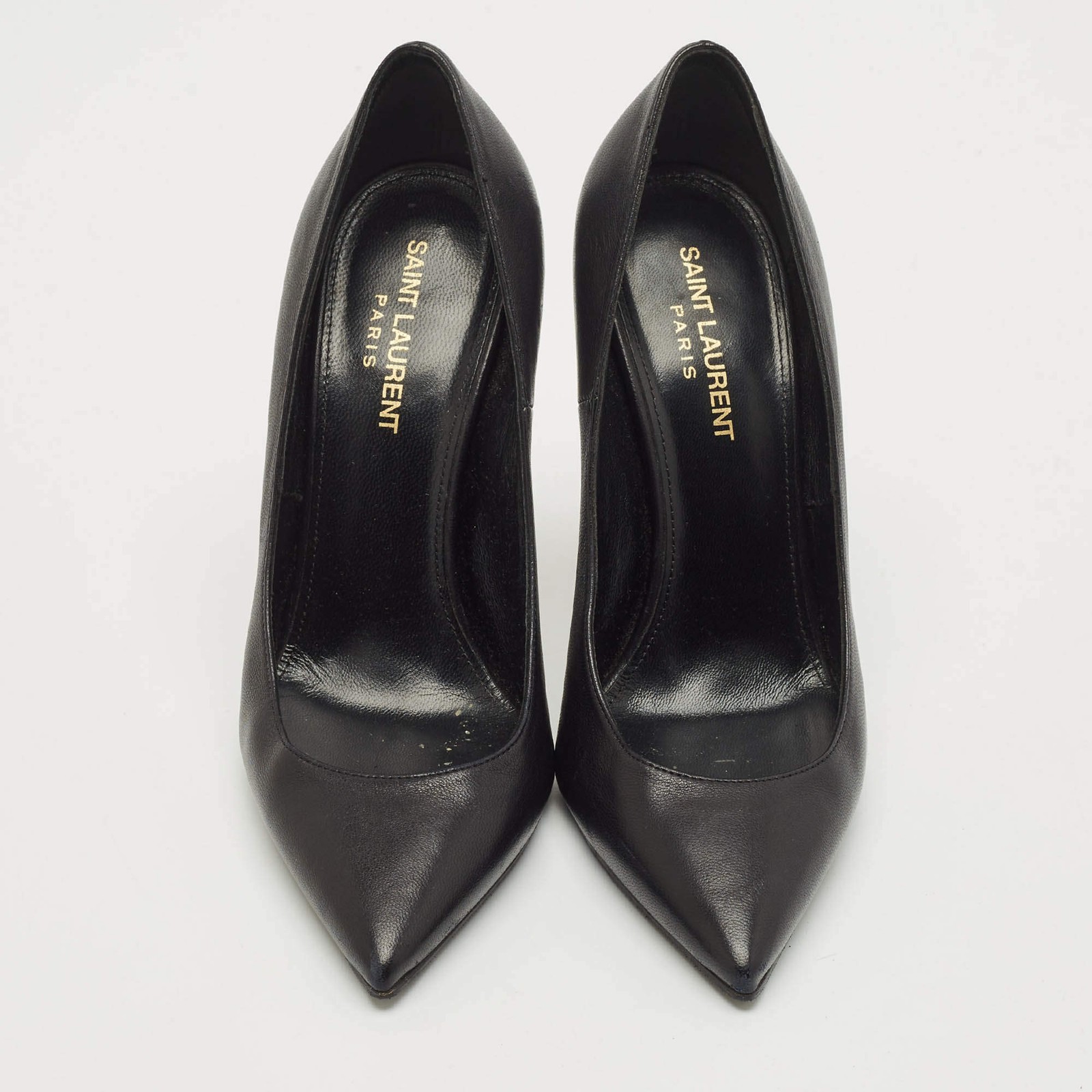 Our eBay Store About Us Contact Us Add to Favorite Sellers Saint Laurent Black Leather Opyum Pointed Toe Pumps Size 375 Make a chic style statement with these designer pumps. They showcase sturdy heels and durable soles, perfect for your fashionable outings! Product Details Brand Saint Laurent Paris Color Black Includes Original Dustbag Outsole Length 24 cm Outsole Width 8.5 cm Size 37.5 Certified by The Luxury Closet This item has gone through a detailed authentication process overseen by our experts. We offer a lifetime guarantee of authenticity on all our items. How We Check The in-house team of experts at The Luxury Closet is highly trained to verify the authenticity and the condition of the luxury products. They ensure that only 100% authentic items are put on sale.The evaluation process is unique with its own mix of assessment criteria and differs according to the category. Each item is evaluated based on the following combination of hallmarks, hardware, stitching, symmetry, material, craftsmanship, stamping, codes, hologram stickers, and packaging. Our authenticators also check if the items have been modified or amended (e.g., aftermarket diamonds, replaced batteries, repaired bags, etc.) International Buyers Import duties, taxes and charges are not included in the item price. These charges are the buyers responsibility. Please check with your country’s customs office to determine what these additional cost will be prior to buying.